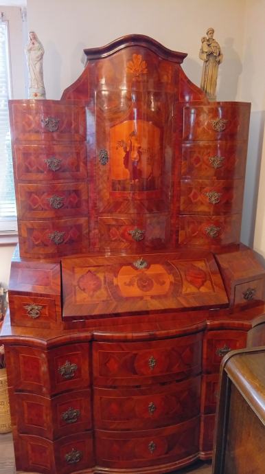 Prekrasan povjesni komad namještaja iz doba baroka pun intarzija sa debelim ( 3 mm ) furnirom.