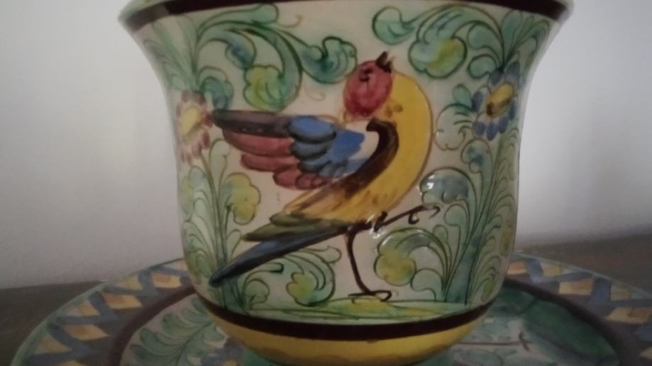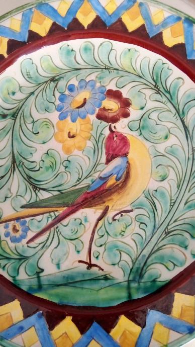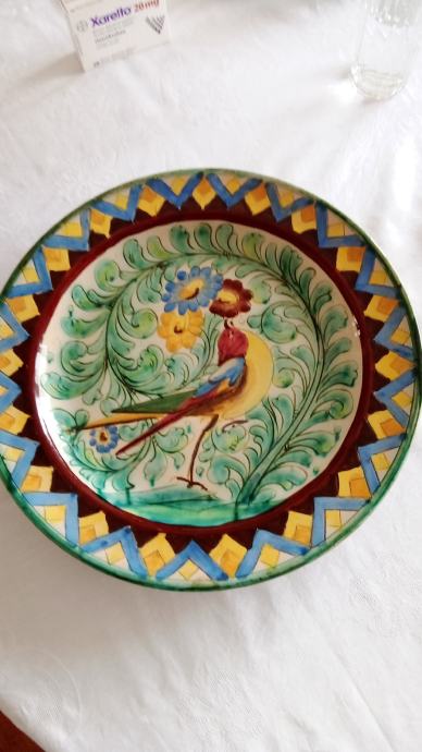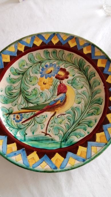 TANJUR sa ZDJELOM iz Peruge bez oštećenja,ručno oslikani.Tanjur promjera 30 cm.