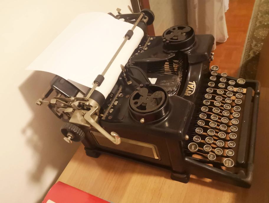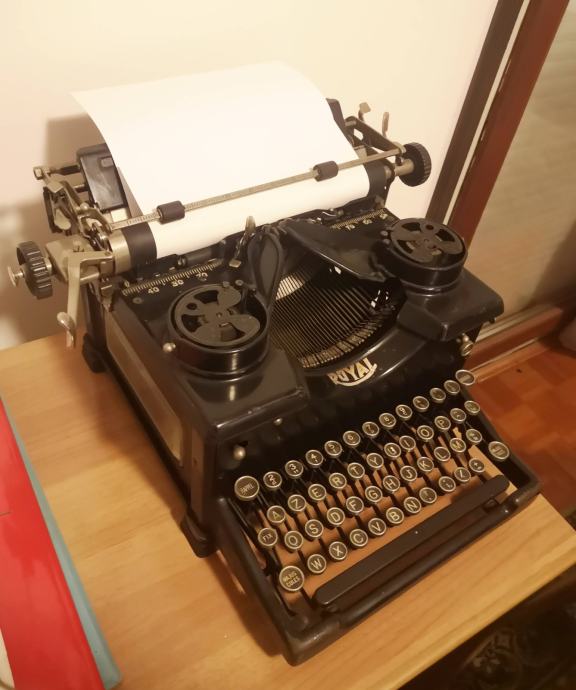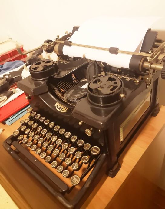 Poznati model - pisaća mašina Royal 10, francusko izdanje. U odličnom stanju bez hrđe, boja malo poguljena na prednjem donjem dijelu. Pisaća mašina ima jedno staklo sa svake strane - model je iz otprilike 1923. - 1924. godine. Pica Typeface. Dolazi s dodatnim vrpcama za pisaću mašinu.