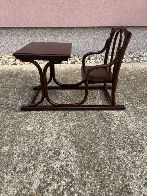 Thonet djecji pisaci stol, napravljen pocetkom 20stoljeca od savijene bukovine. Stol je restauriran i malo koristen.
