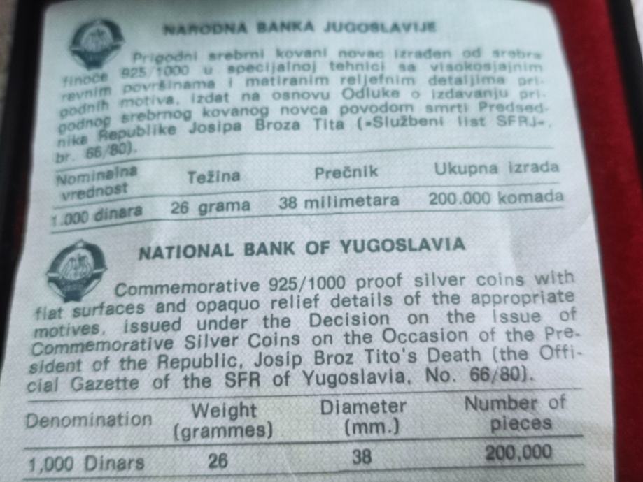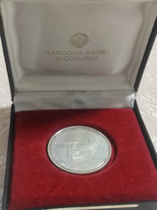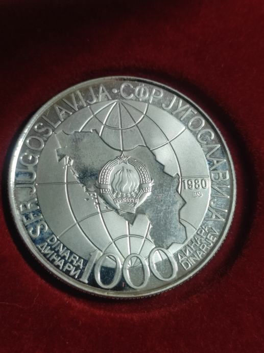 Prodajem impresivan srebrnjak 1000 dinara s Titovim likom. Kovan je 1980. godine, povodom smrti Josipa Broza Tita.
