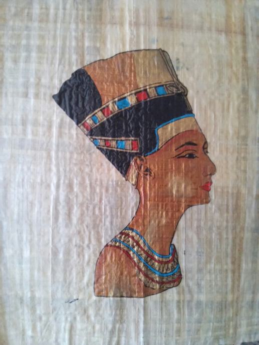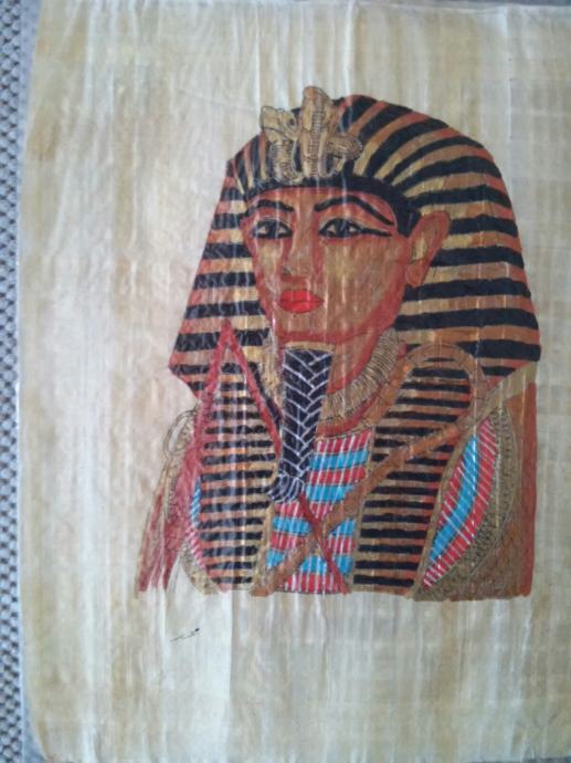 Portreti Tutsnkamona i Nefertiti na originalnom papirusu sa certifikom, kupljeni u Egiptu.
