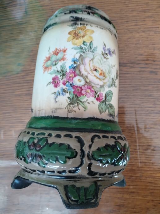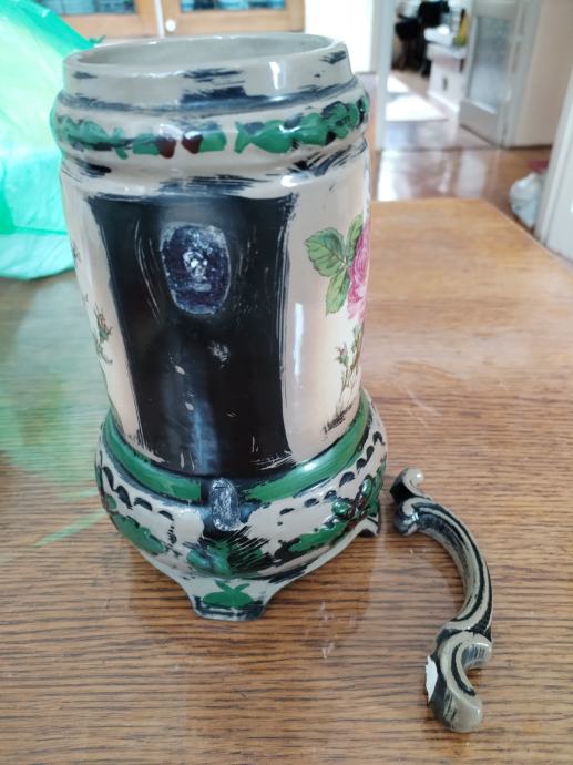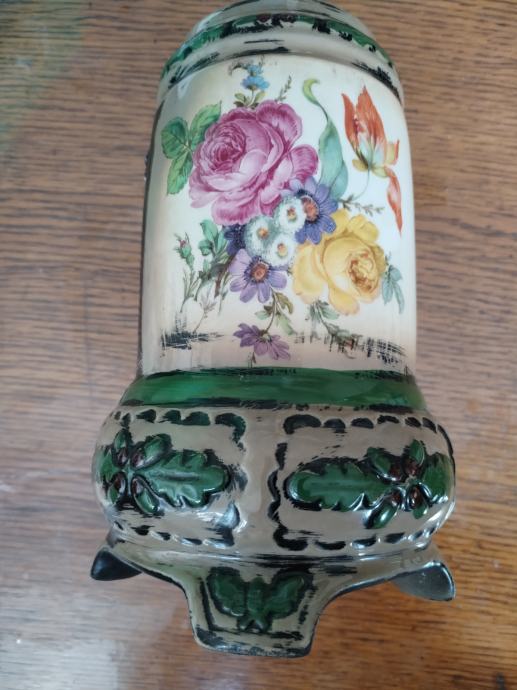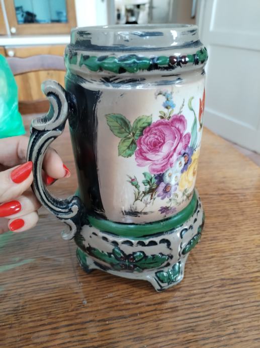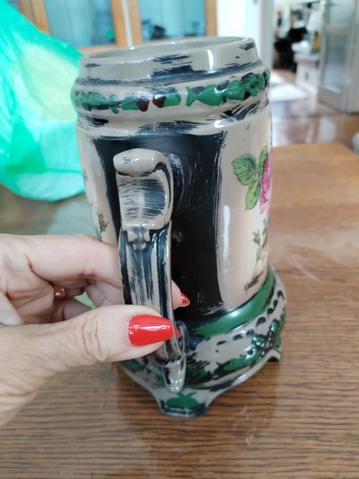 Prodajem ukrasni vrč za pivu .- Dresden design Sandizell ručno rađeno. Sandizell je bila stara Bavarska plemička obitelj. Ručka vrča se "odljepila", ali ju prilažem ( kao na slikama)! Otisnut je žig plave kraljevse krune i N. Vrč teži 1,5 kg.