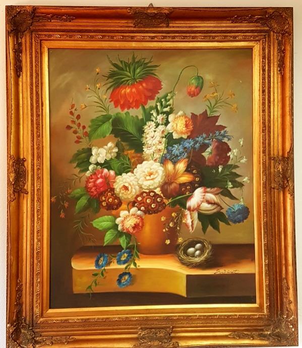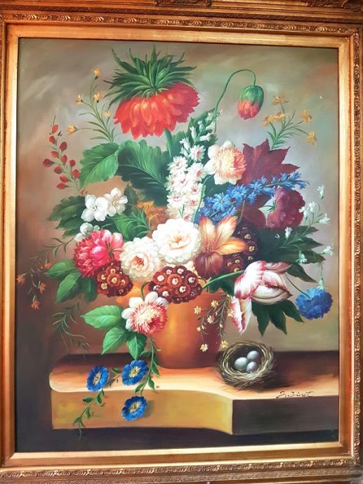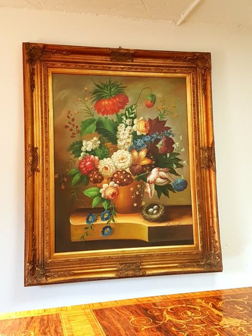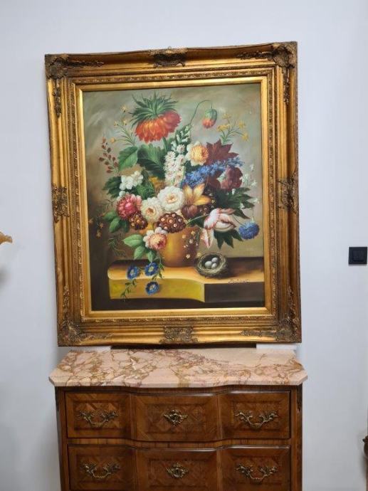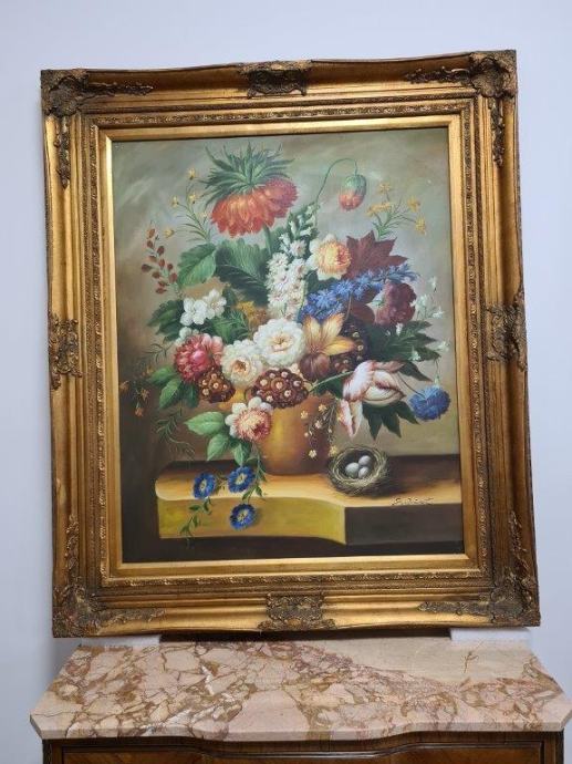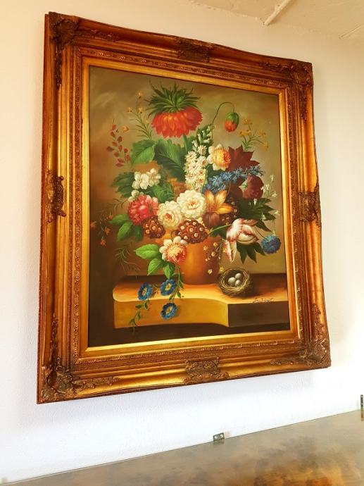 Veliki motiv u starom okviru - ulje na platnu - potpisano. Dimenzije: 80 x 100 cm.