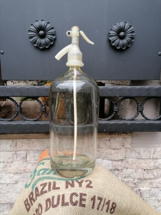 Velika antik boca za soda vodu. Debelo masivno staklo. Boca potpisana i žigirana. Uporabna i ukrasna. Kolekcionarski primjerak. Dobijete predmet sa slika.