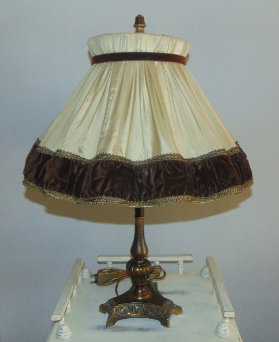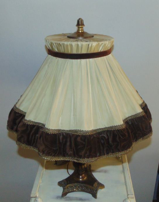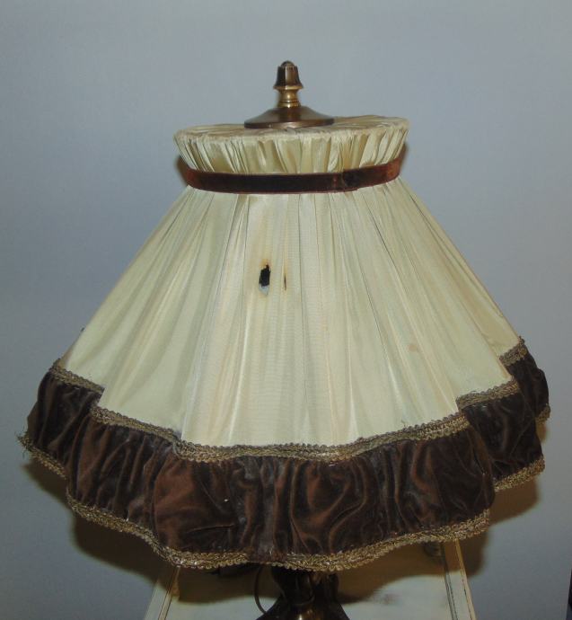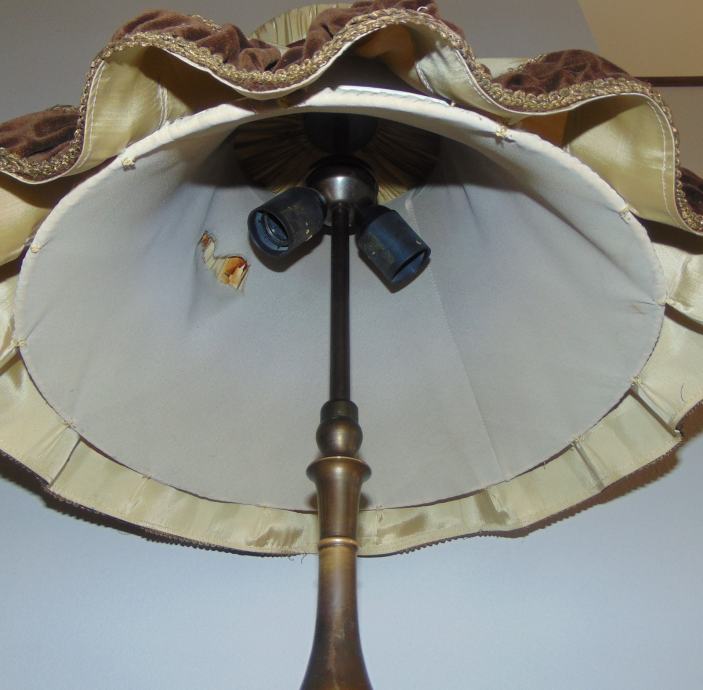 Konstrukcija širma je metalna a širm platneni i ima dvije rupice od žarulje...nažalost ali se može popraviti bez problema