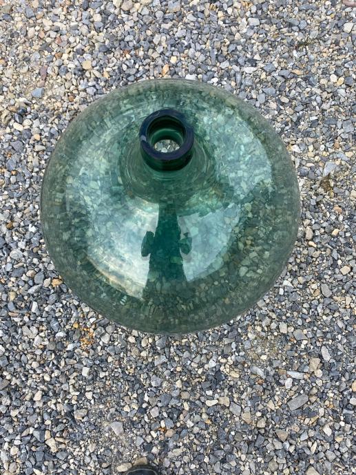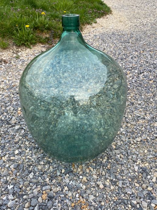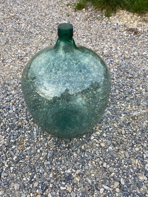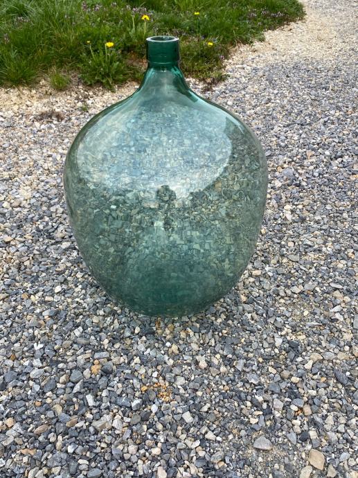 Velika puhana staklena boca sa vidljivim nepravilnostima.