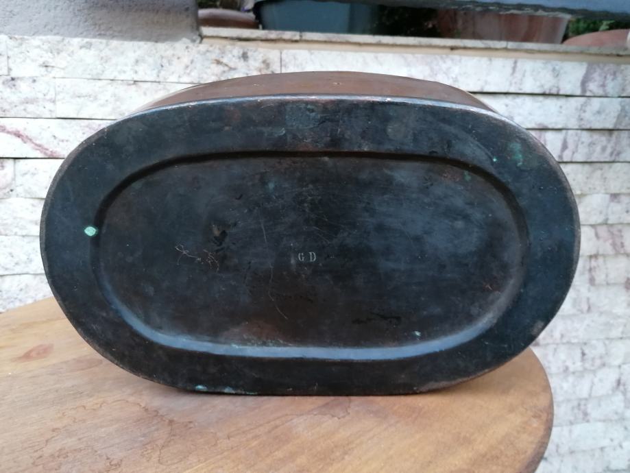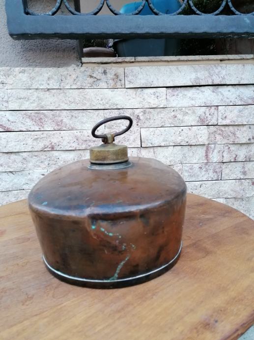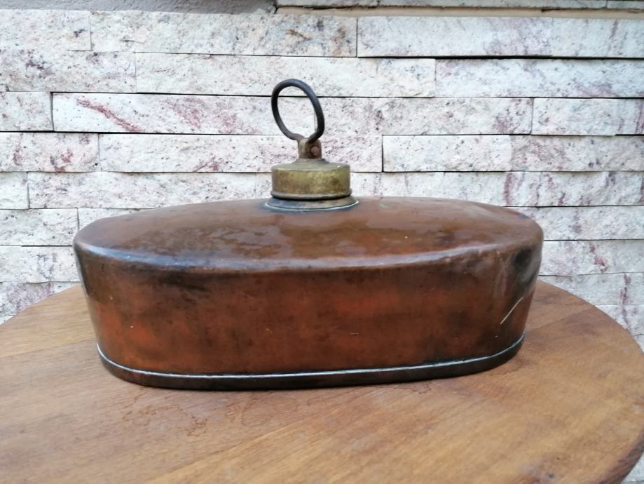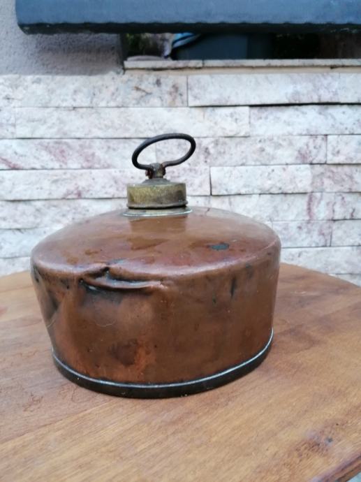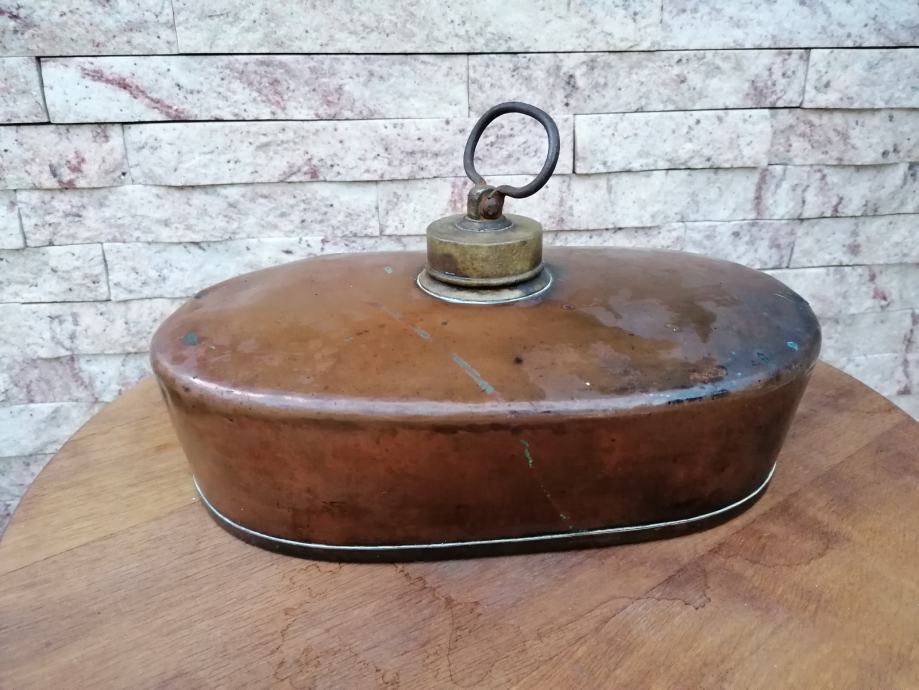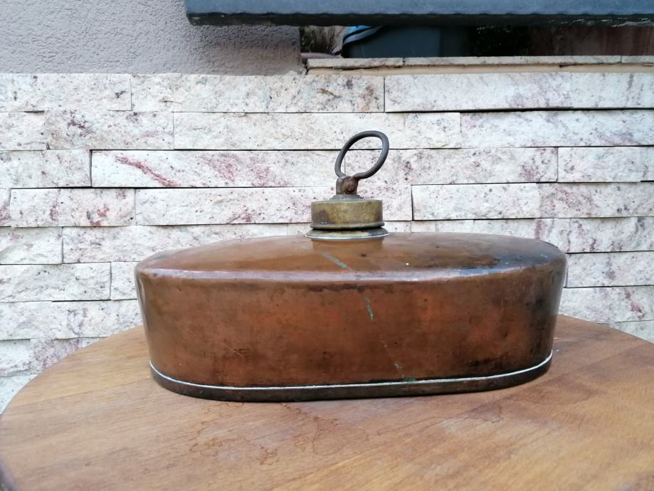 Dakle, prekrasan antik bakreni termofor iz doba Austro-ugarske monarhije. Tragovi vremena i uporabe inače u odličnom stanju. Jako rijedak model s obzirom na veličinu i oblik. Dimenzije 32x21x15 cm. Dobijete predmet sa slika.