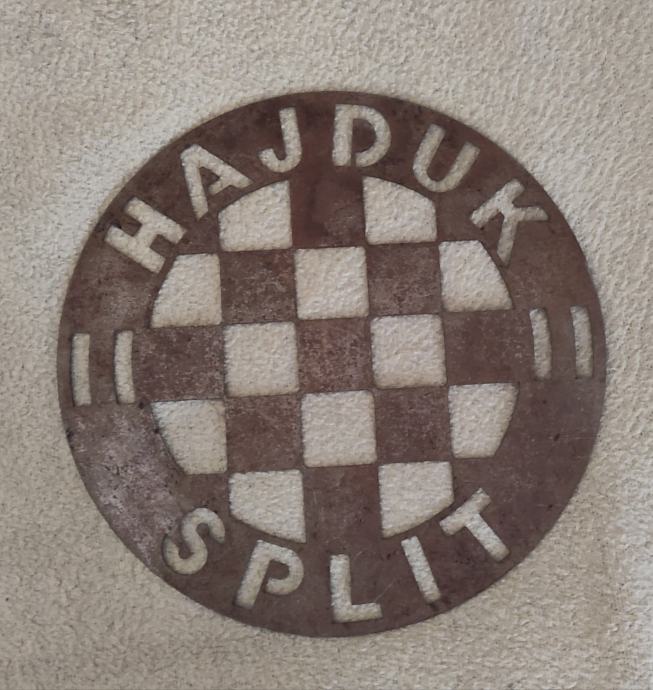 Grb je metalni, dimenzije 32 cm. Može poslužiti kao matrica za sprejani grb na zidu.
