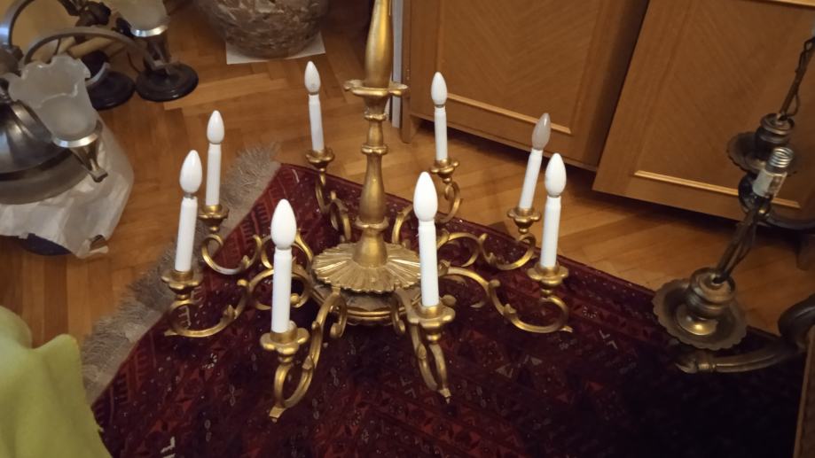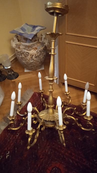 Atraktivan veliki starinski drveni luster, zlatne boje,