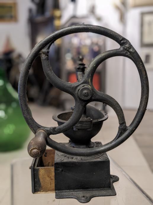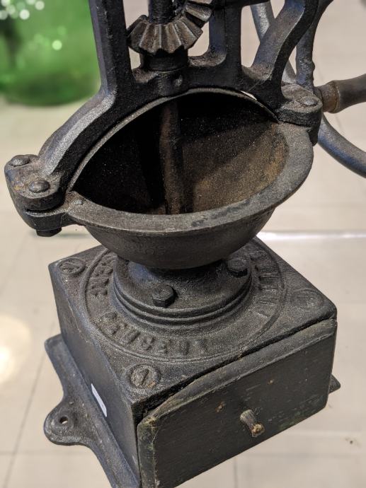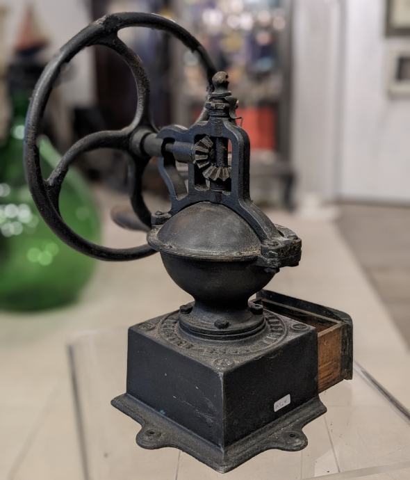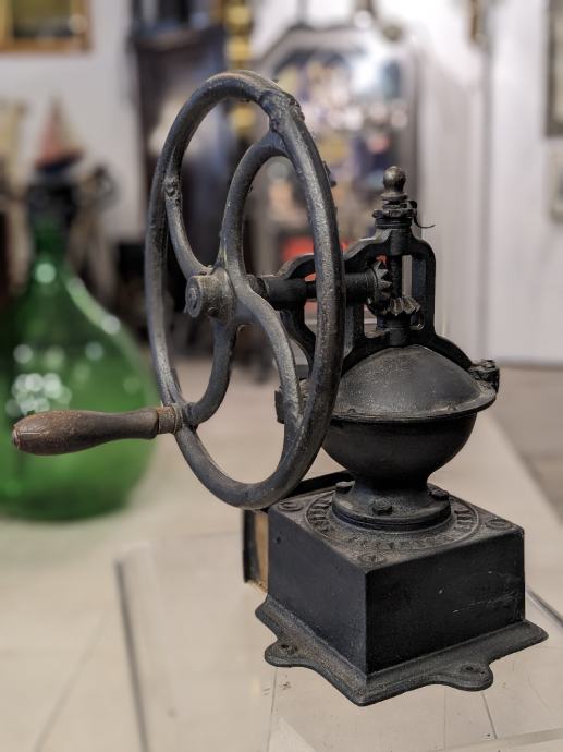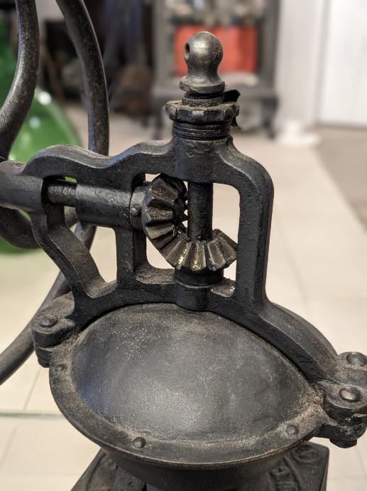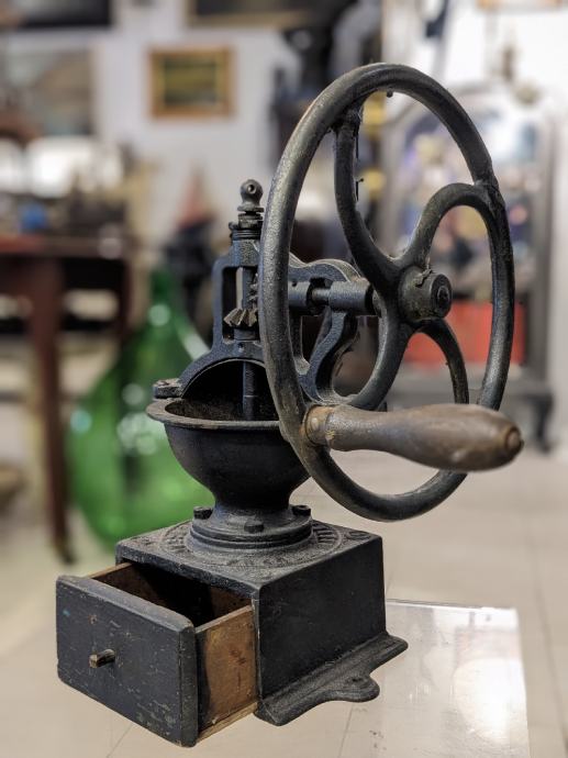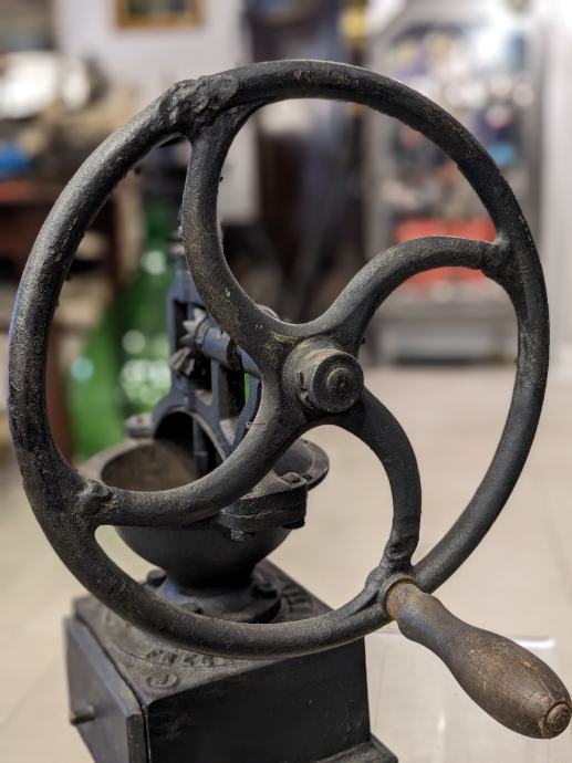 Francuski Peugeot veliki stolni mlinac da kavu, od lijevanog željeza i sa drvenom drškom.