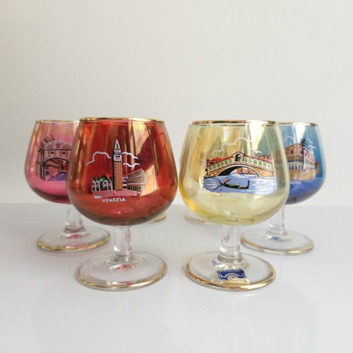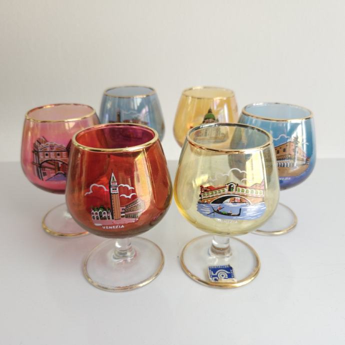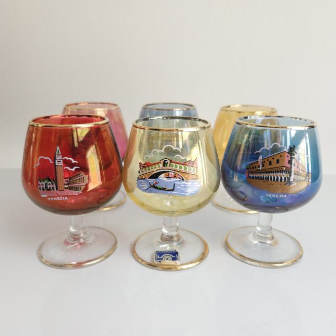 Set od 6 venecijanskih staklenih čaša u više boja.