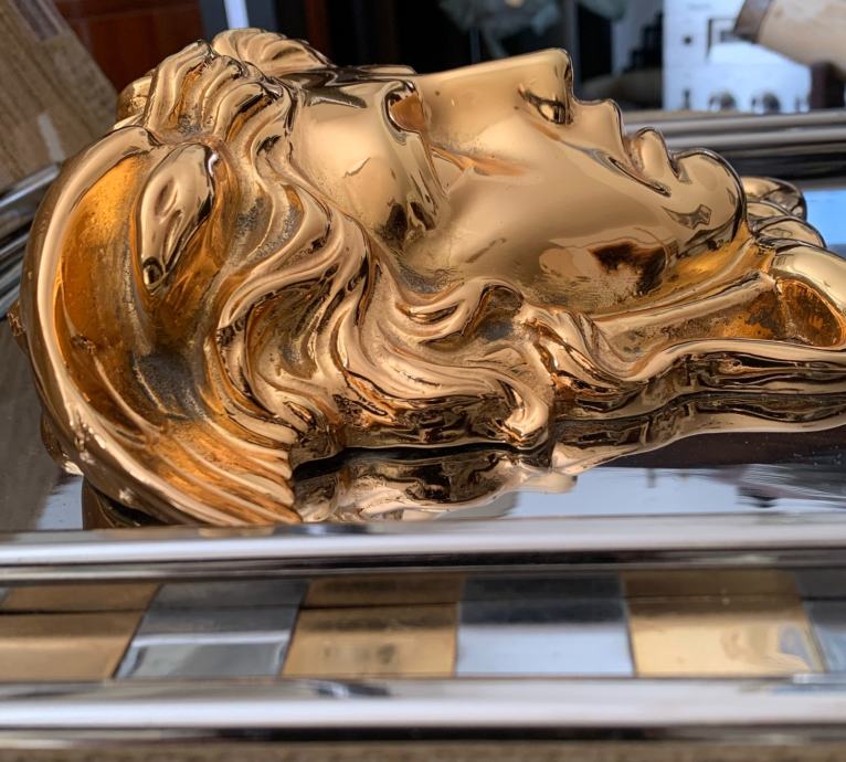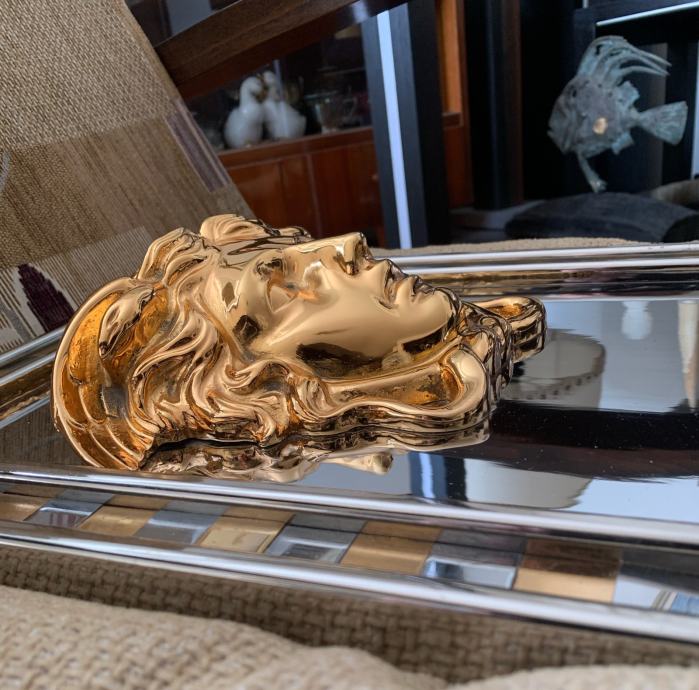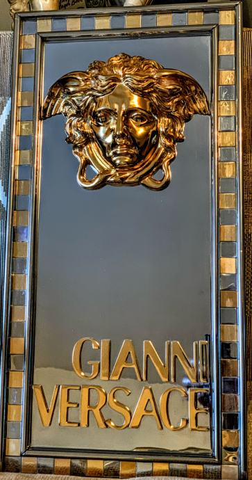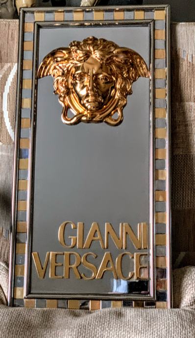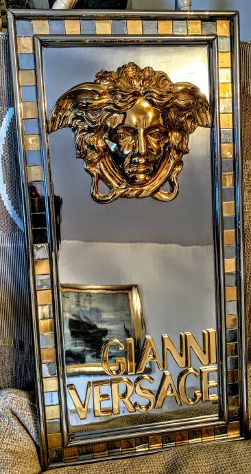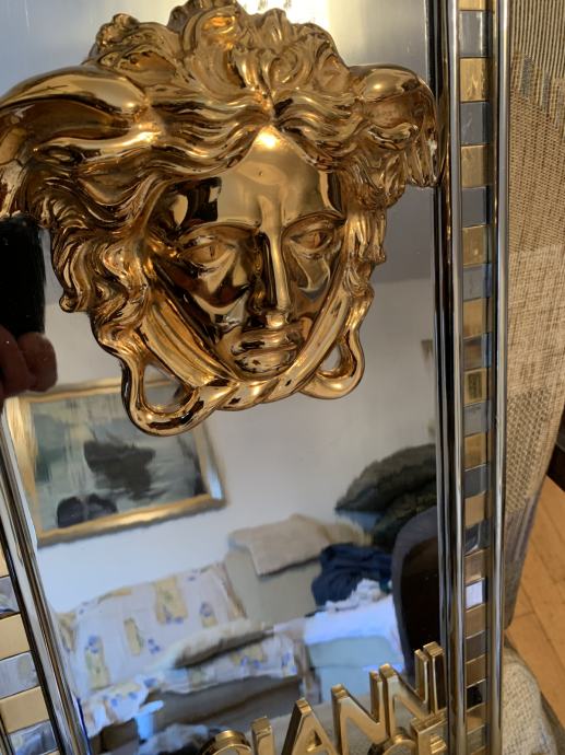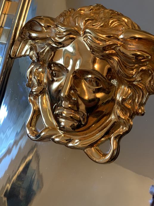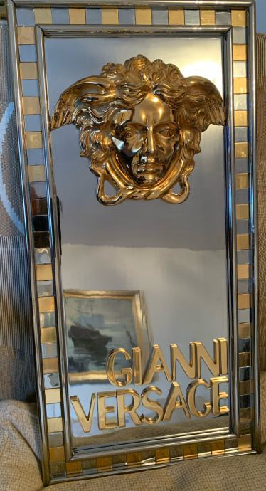 Prodajem jedinstveni Versace znak sa pozlaćenom glavom meduze i natpisom Gianni Versace(metal advertising sign,Billboard).Znak je dimenzija :visina 60 cm,širina 30 cm i visina profila 9 cm a težina je impozantnih 18 kg!Radi se o ulaznom znaku u Versace studio Milano 1980-90 godina.Pogledajte slike!