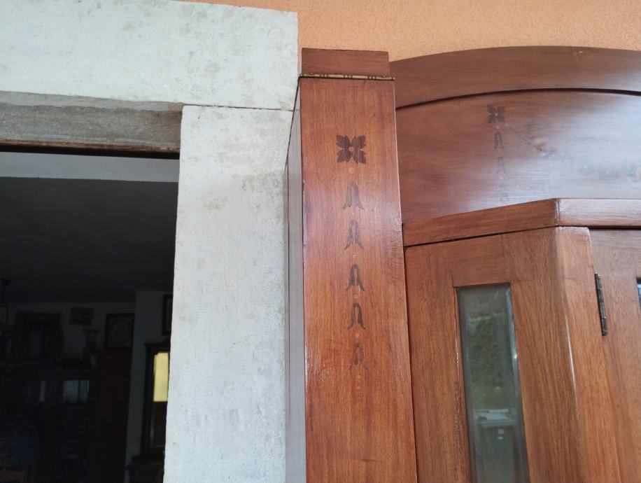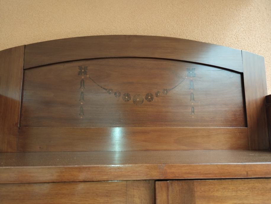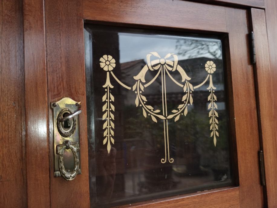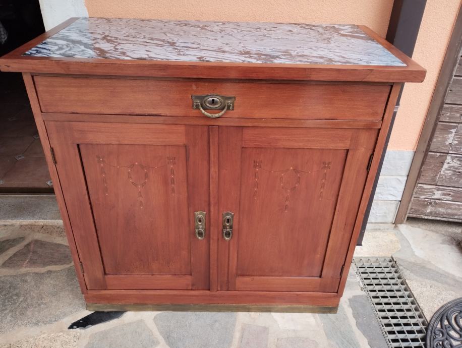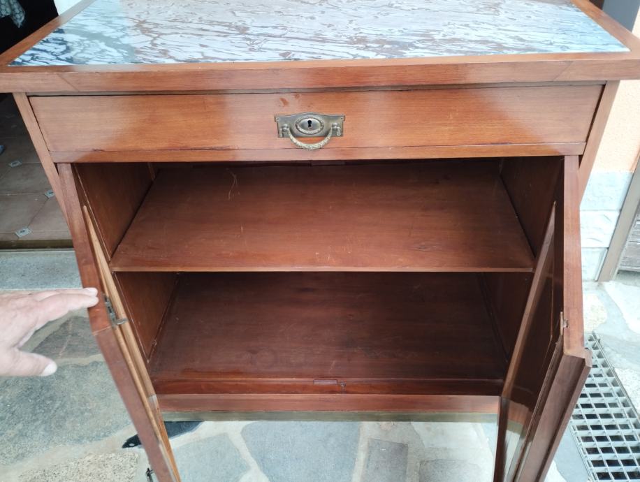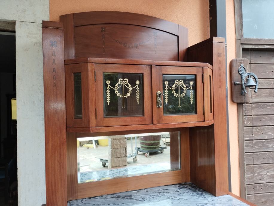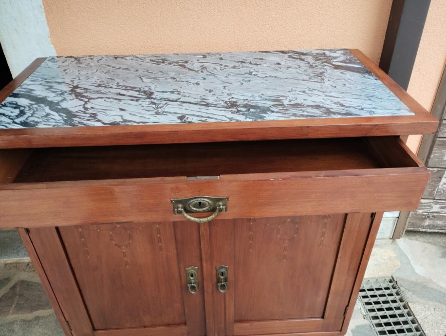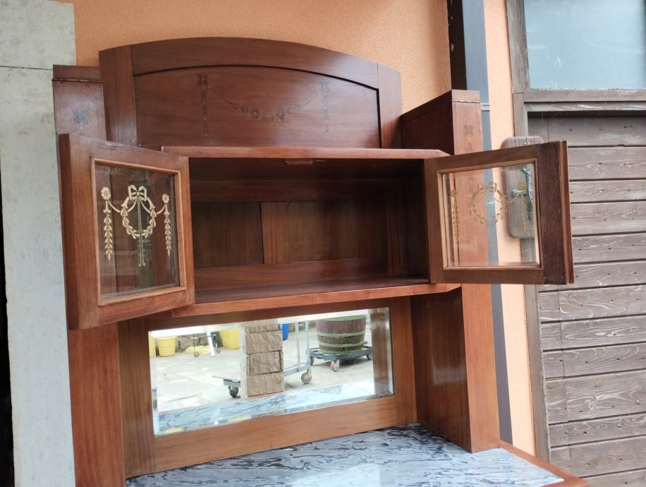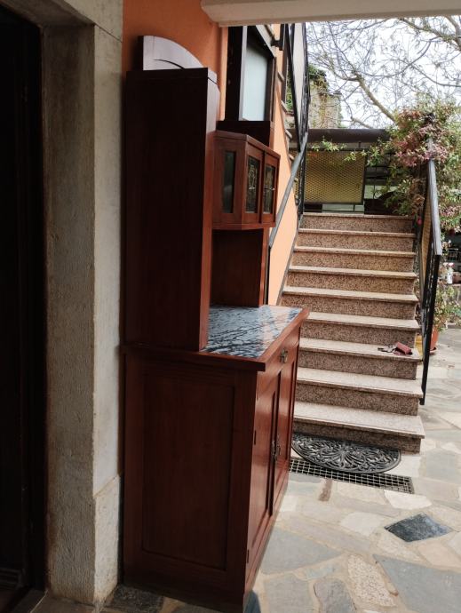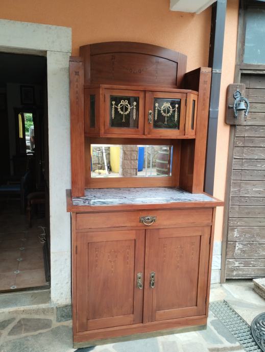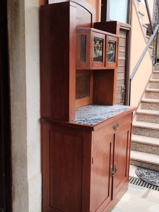 Jako lijepa vetrina sa satiranim mramorom i brusenim staklom, u odličnom stanju.