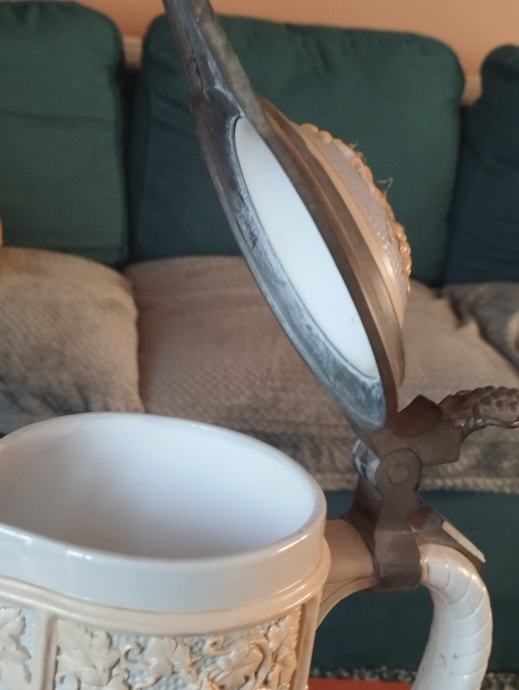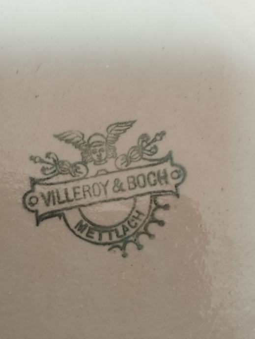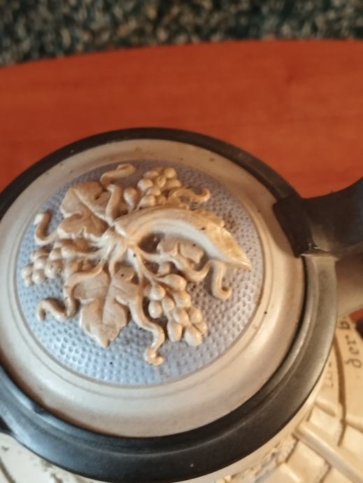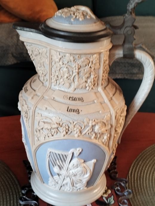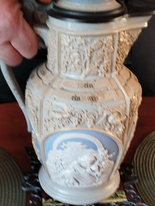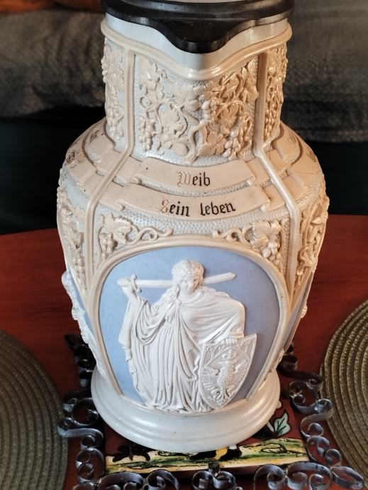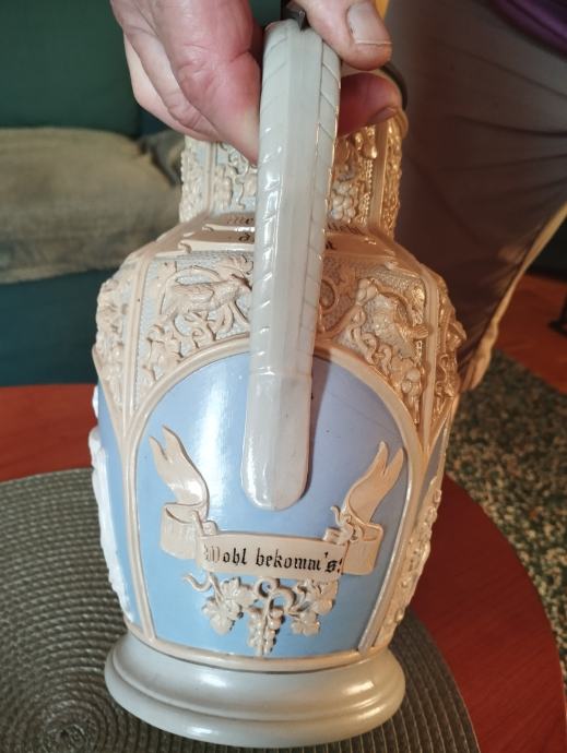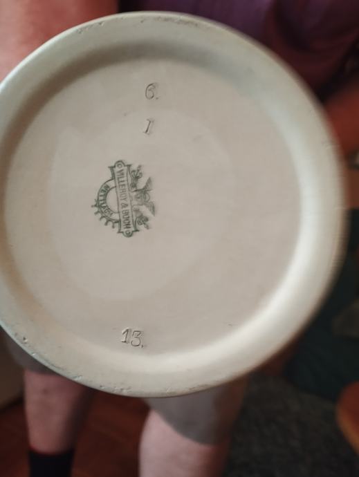 Villeroy Boch vrč za vino,oko 1900. Proizveden,jako dobro sačuvan,sa natpisima i brojem,visina 31 cm,širina 13 dole,18 sredina,najuži 11,vrlo rijedak primjerak,