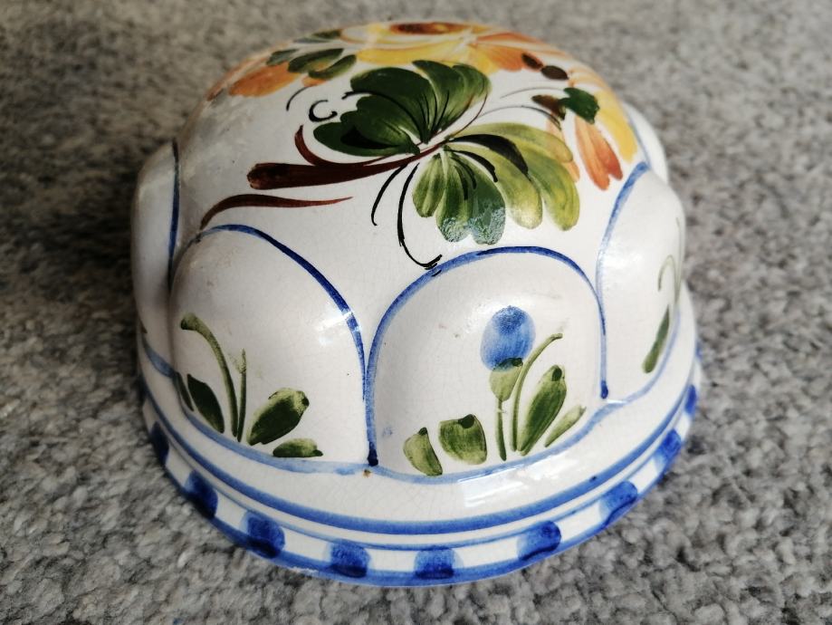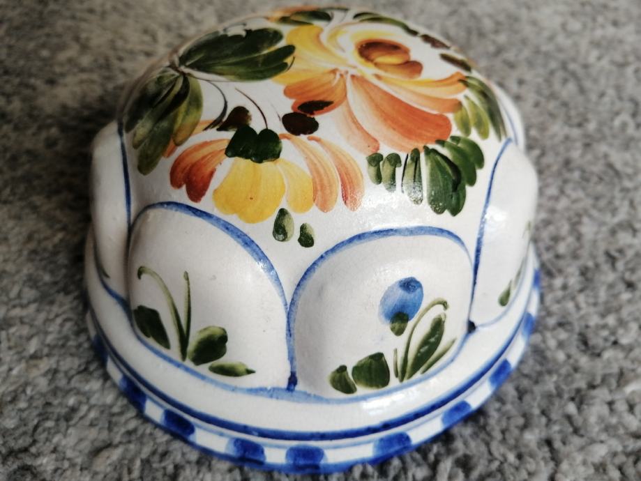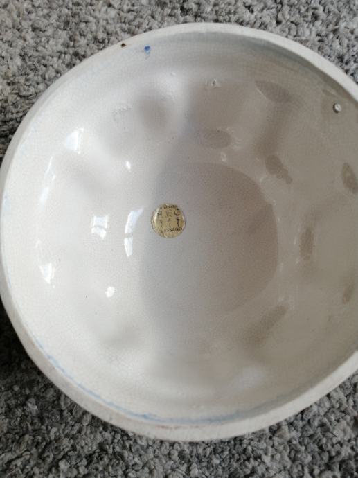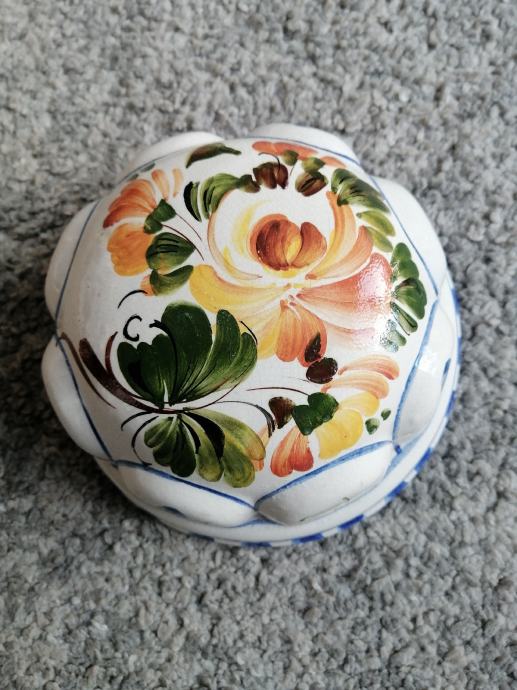 Ručno oslikana talijanska keramička ukrasna posuda iz 1970-tih u obliku modle, širina 15,5 cm, visina 8 cm.