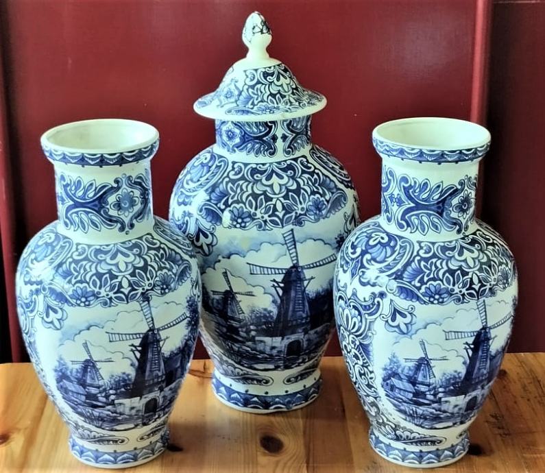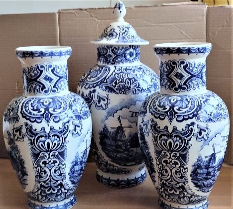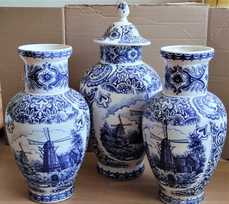Vintage Delft keramička urna sa setom vaza