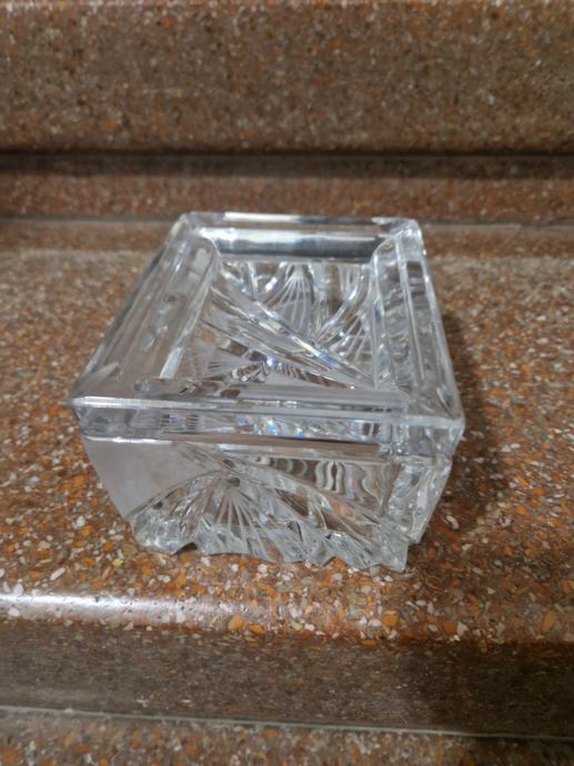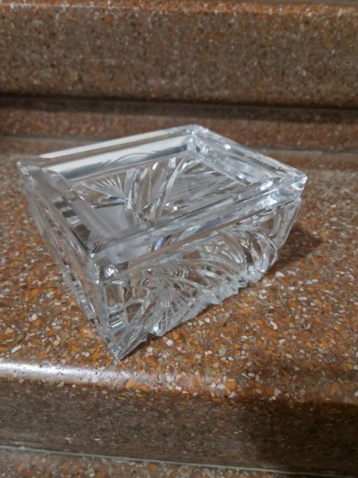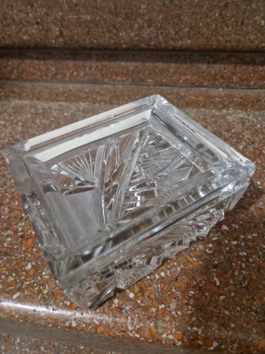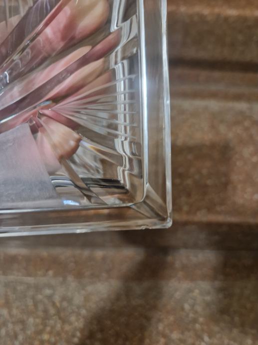 Vjerojatno Rogaška, visina oko 7.5 cm, širina oko 13 cm...s unutarnje strane mrvicu ogrebana ( poslikano) Al nije ništa strašno i baš se mora tražiti da se vidi...poruke na whatsapp