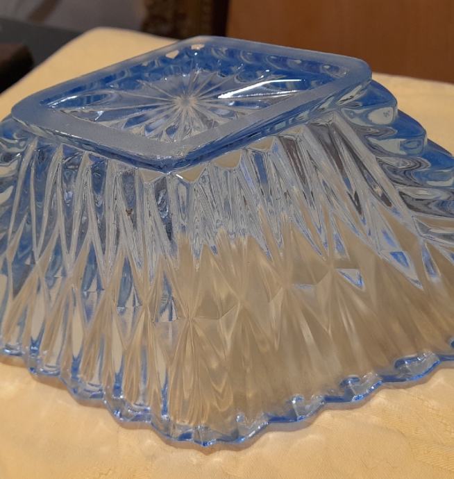 Vintage staklZdj.od ljev.stakla.Duzine22cm i sir11,5cm.Pogodna za serviranje bombona bobica,cvijeca,keksa,šminke itdNe saljem.