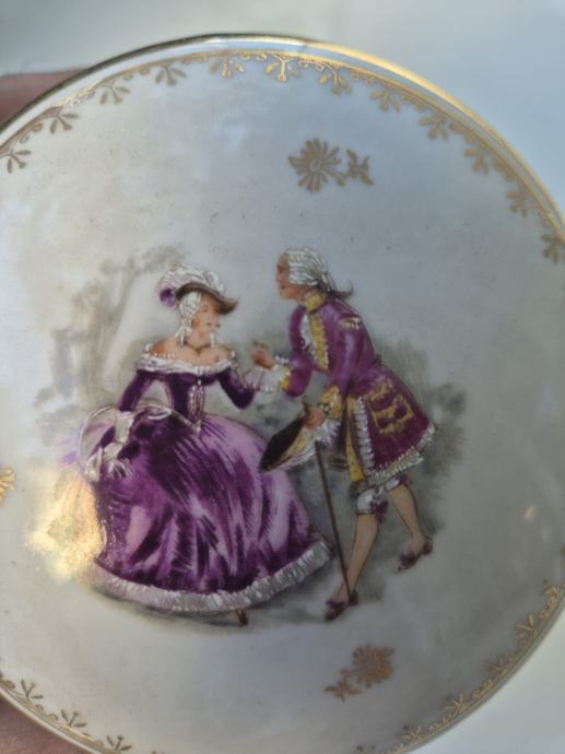 Romantični motiv, fini francuski porculan i s obzirom na starost u solidnom stanju...visina oko 8.5 cm a širina oko 10.5 cm...poruke na whatsapp