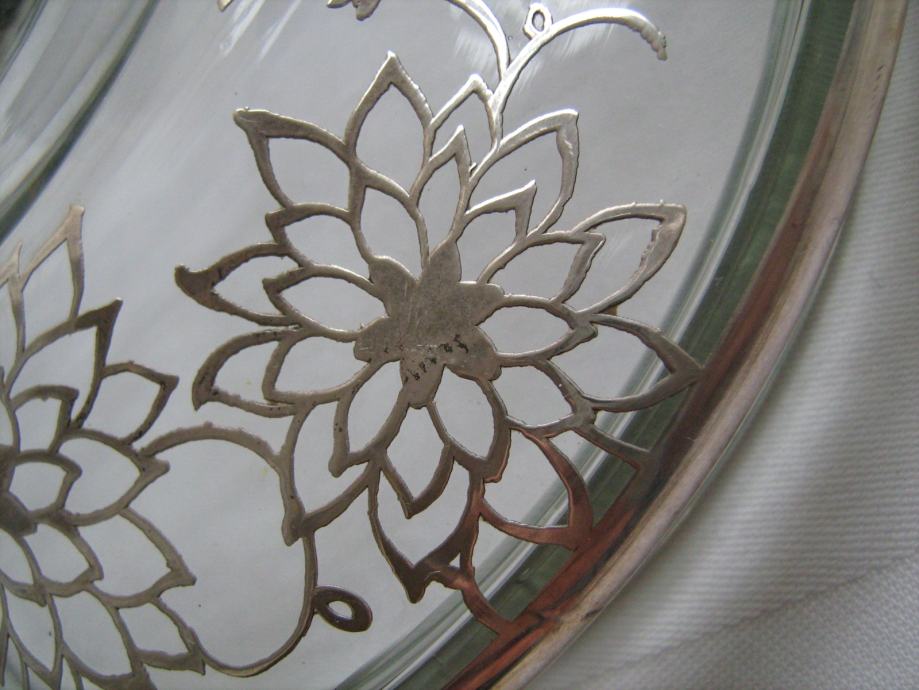Prava srebrna žica cvijetnog dezena je optočena okolo na oba dijela posude poput paučine (nije oslikano već cijeli dezen izrađen u žici od srebra) izrađenog kao tabletić ili čipka optočeno po staklu ---RUČNI RAD ITALIJA -VENECIJA !!!!