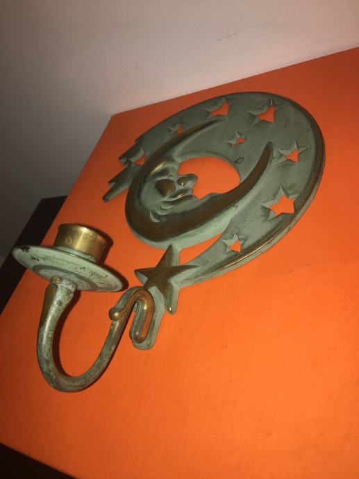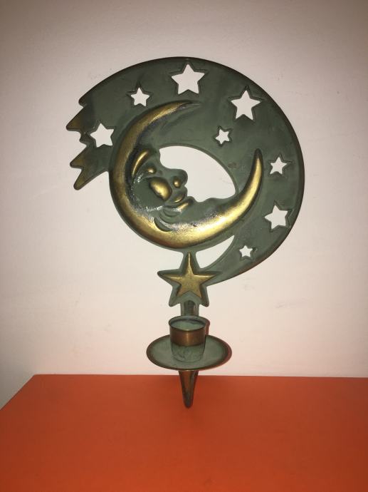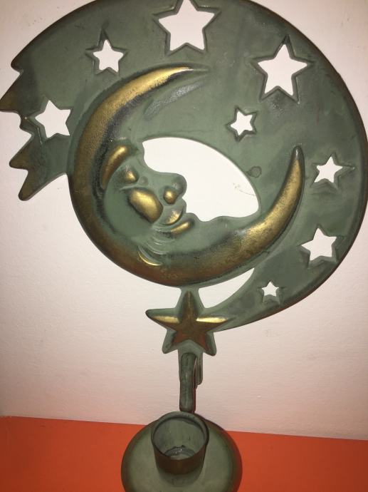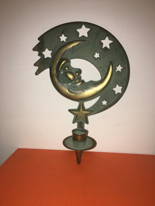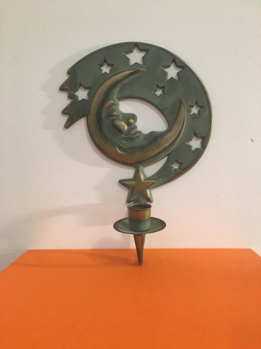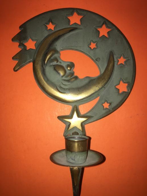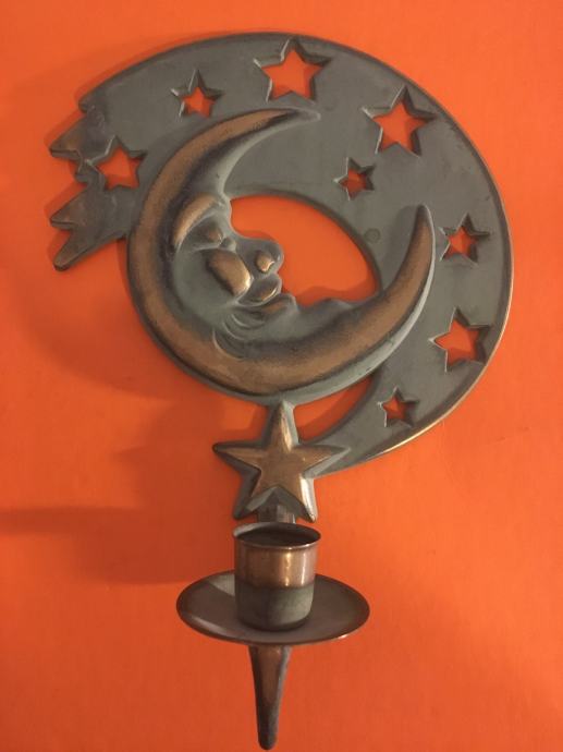 Vintage zidni držač svijeće Partylite 1994 s motivom mjeseca i zvijezda na nebu.