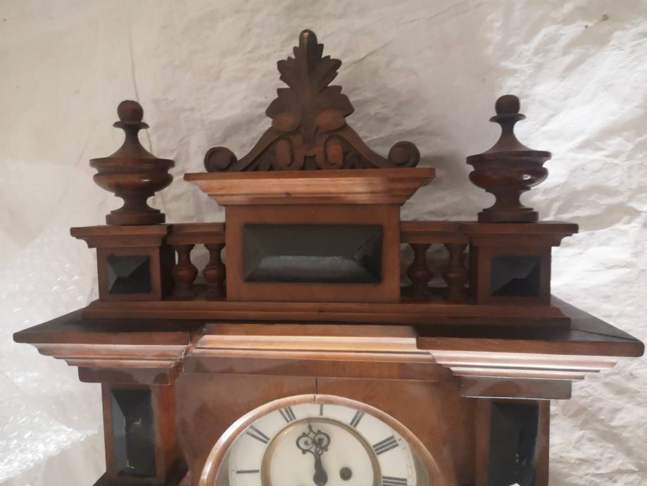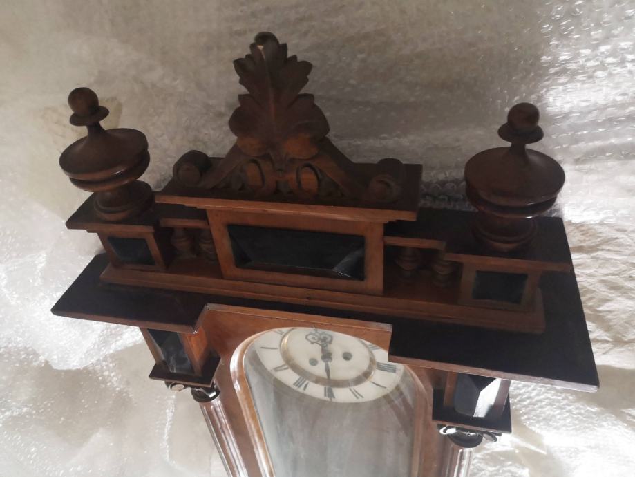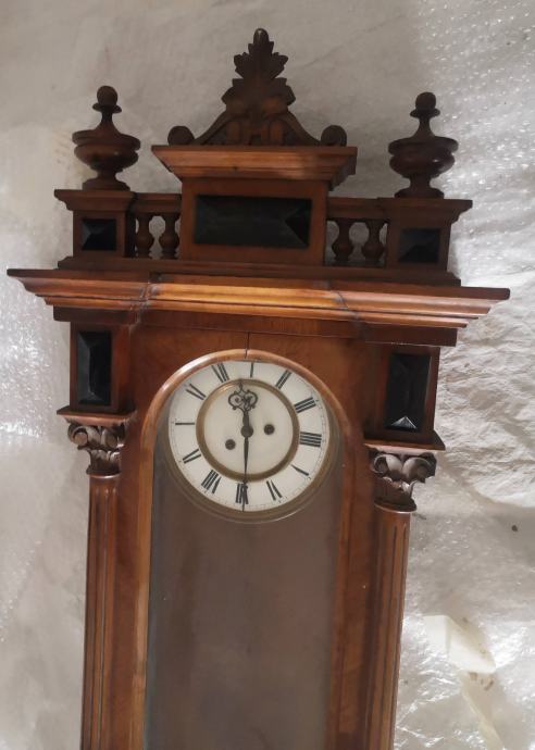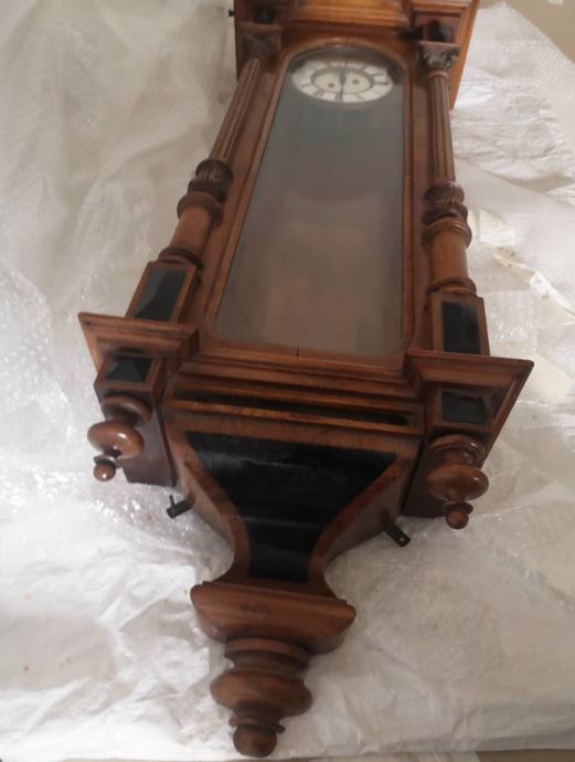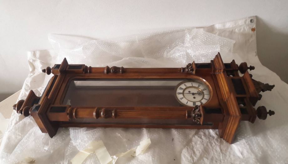 Vintage zidni sat - nedostaju mu bat i dijelovi iz unutrašnjosti pa nije u radnom stanju. Drveno kućište prekrasne izrade. Sa staklenim panelima na bočnim stranicama.