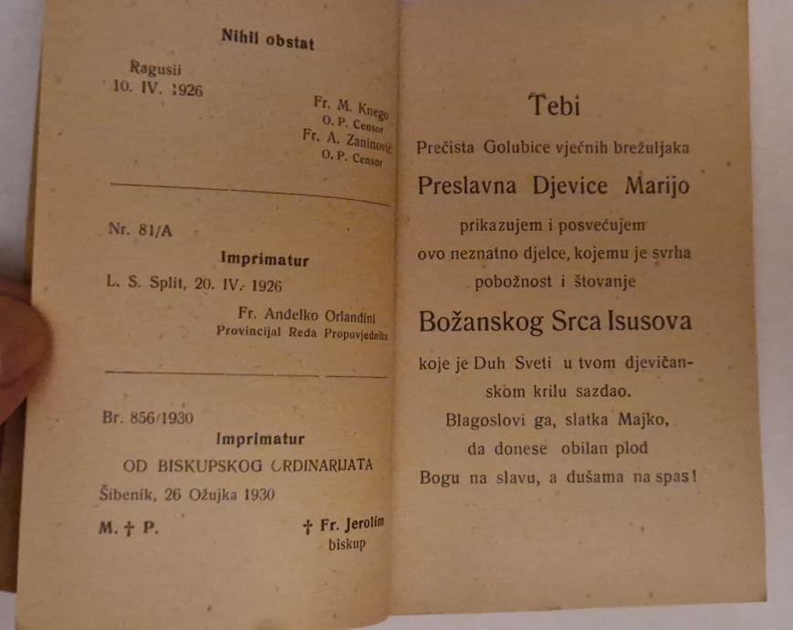 Vjenčić Srca Isusova Tiskara Šibenik 1940. Jerko Vlahović dominikanac