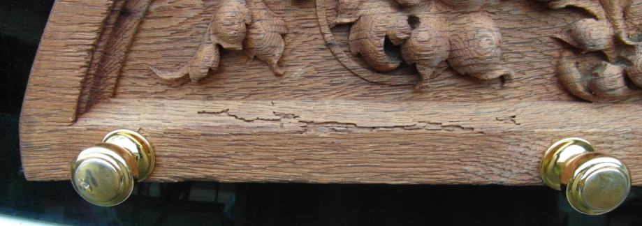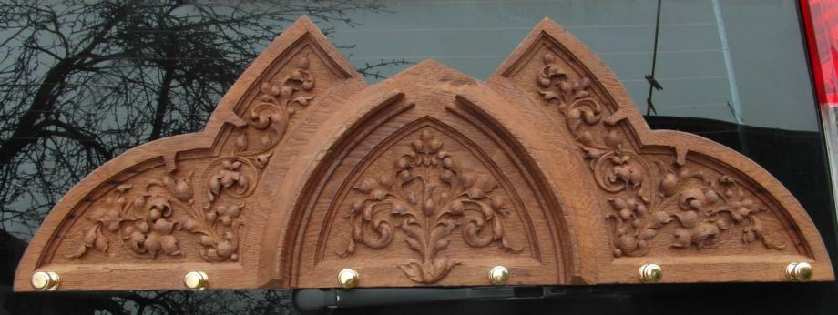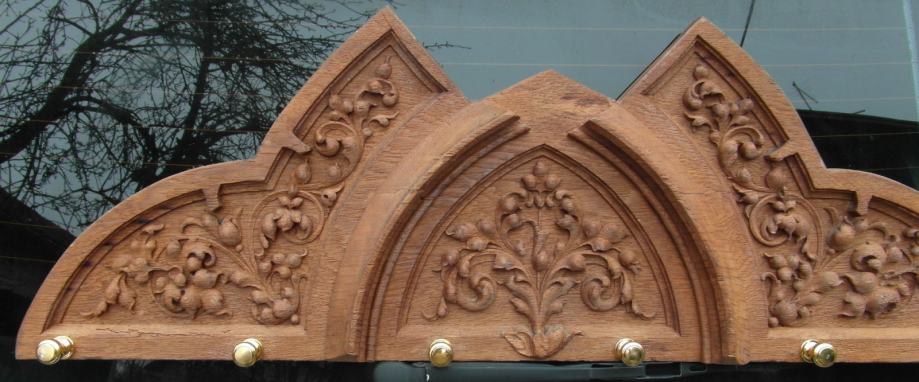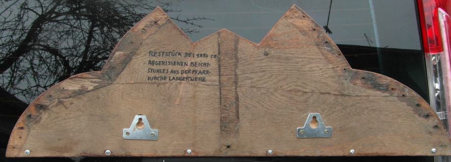Vješalica napravljena od ostataka ispovjedaonice crkve u Langerwehekoja je srušena oko 1950 godine. Dimenzije su 82 x 28 cm. Stanje kao na slikama.