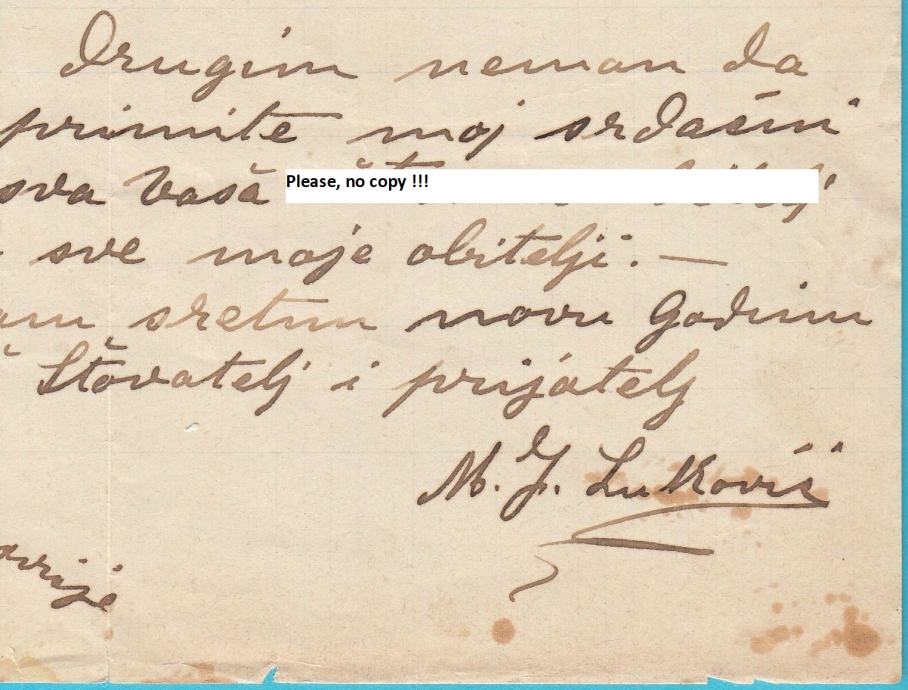 Na dnu pisma je origanlni potpis Marka J. Lukovića.