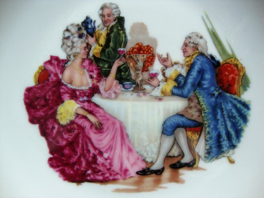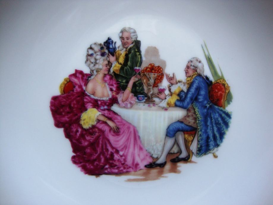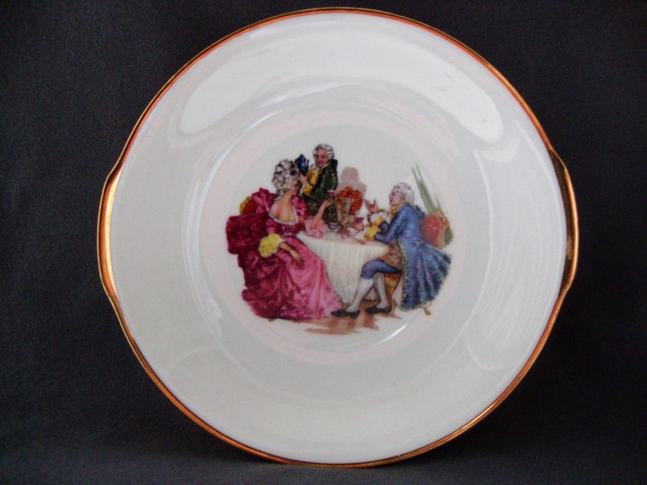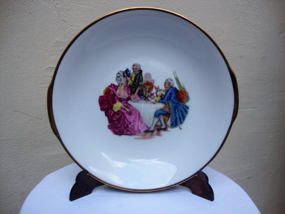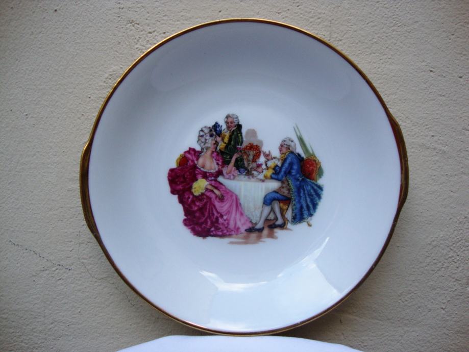 Zdjela - tanjur 20 cm promjera sa baroknim motivom - ručno oslikano - pozlaćeni rub - dubina 3 cm