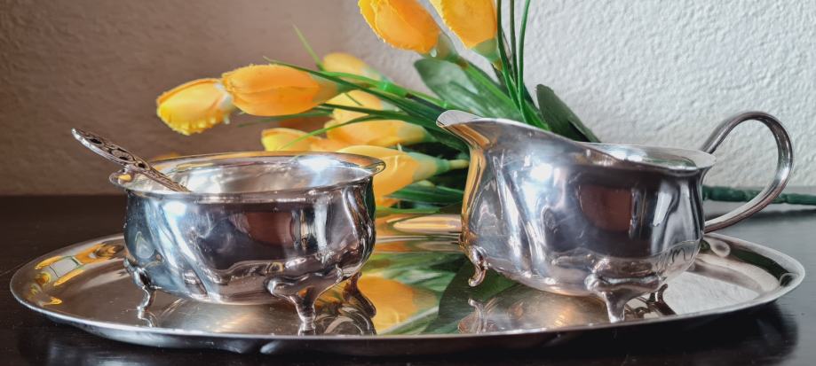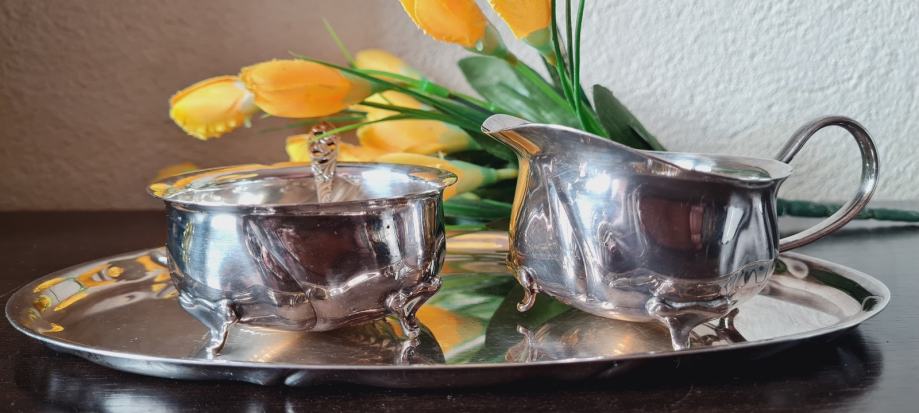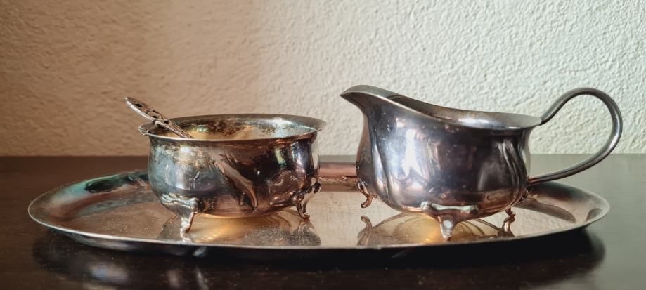 Wmf secesija. Posuda za mlijeko, posude za šećer, te tacna. Uz sve to