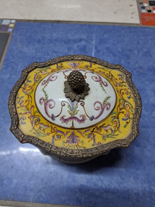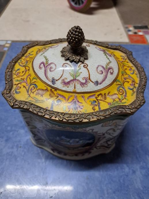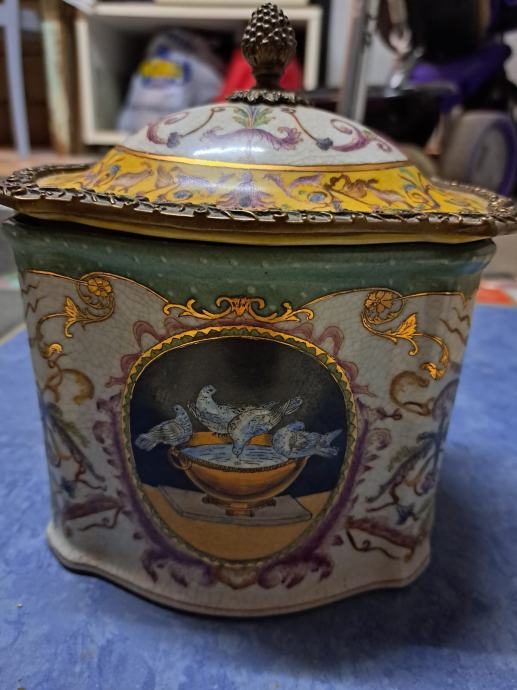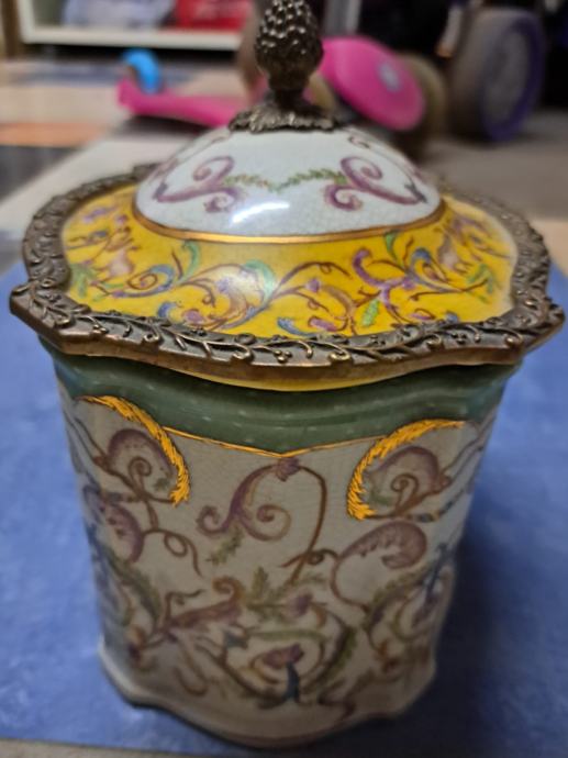 Wong Lee - posuda za sitnice ili kovčeg za nakit iz tvornice WONG LEE (1895.) od porculana i mesinga te ručno oslikanih i pozlaćenih ukrasa