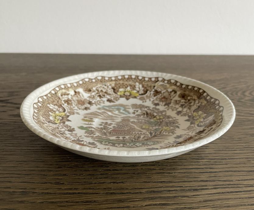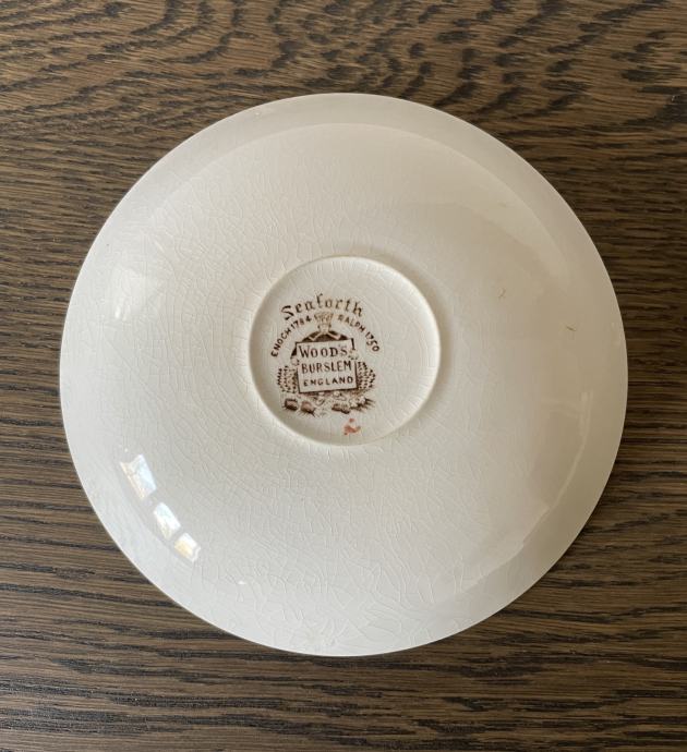 Tanjurić za desert iz 1930-ih WOOD’S BURSLEM iz China serije čiji je dizajn inspiriran azijskom umjetnošću. Promjer 14,5 cm, odlično stanje bez ikakvih oštećenja. Žig na poleđini tanjurića SEAFORTH ENOCH 1784 RALPH 1750 WOOD’S BURSLEM ENGLAND.