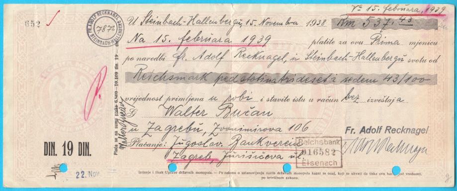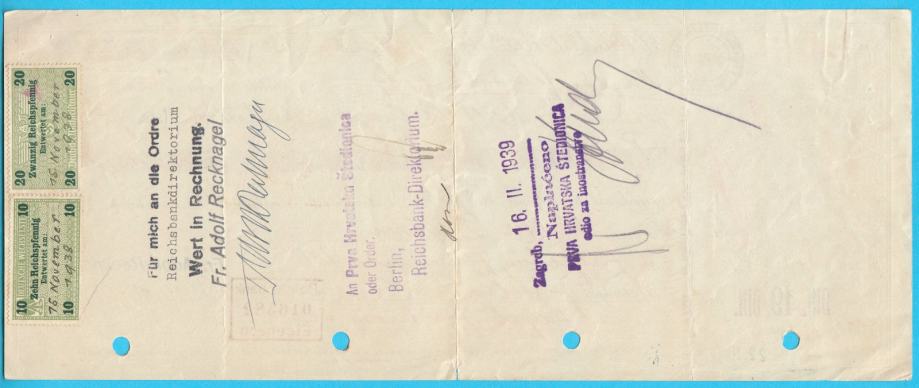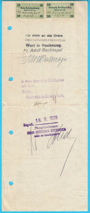 ZAGREB (Kraljevina Jugoslavija) velika stara mjenica iz 1938. godine