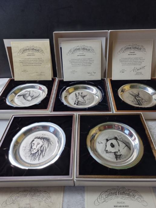 Kolekcija srebrnih tanjura Bernarda Buffeta, kovnica Franklin 1973.-1977., čistoća srebra 925/1000
