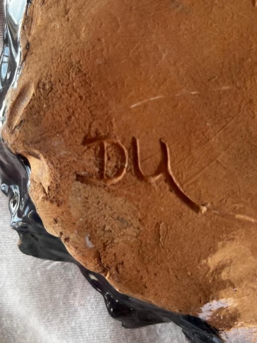 Zanimljiva keramička posudica, umjetnički rad, na dnu slova "DU"