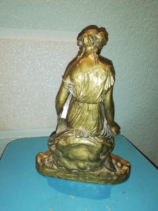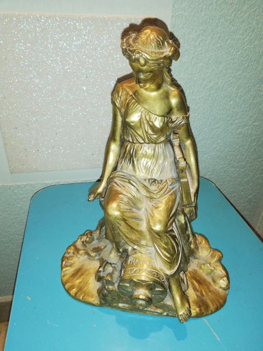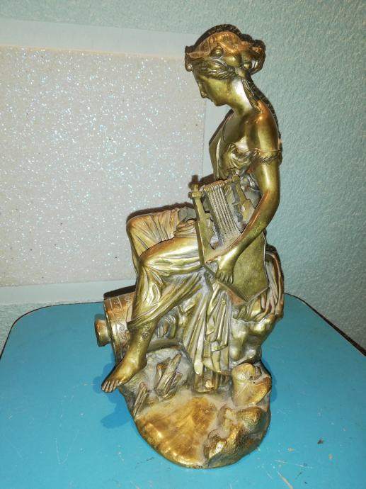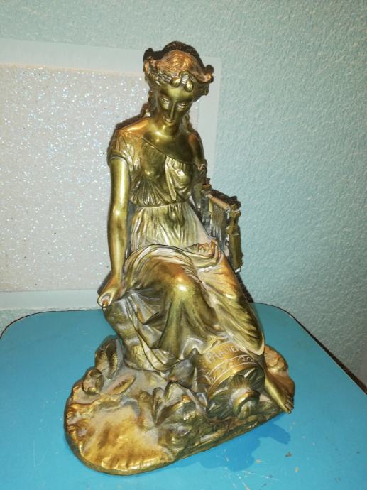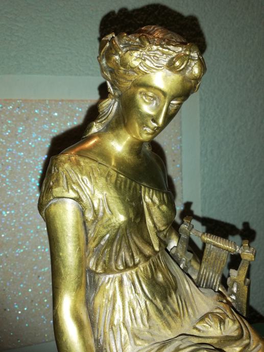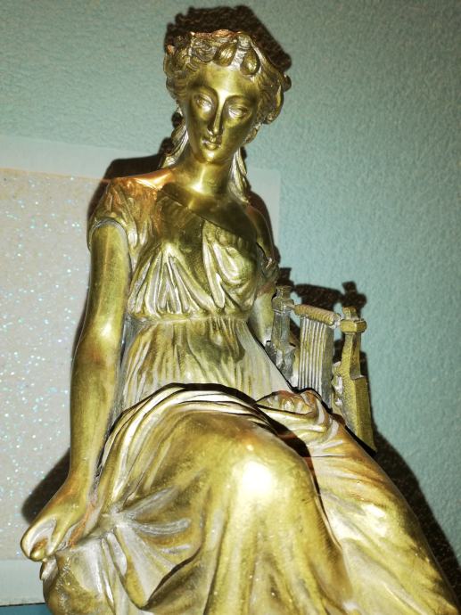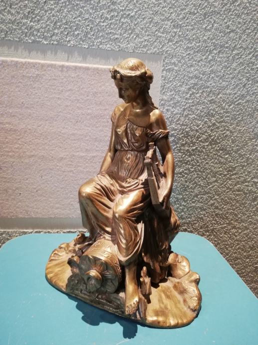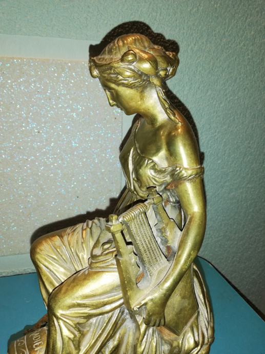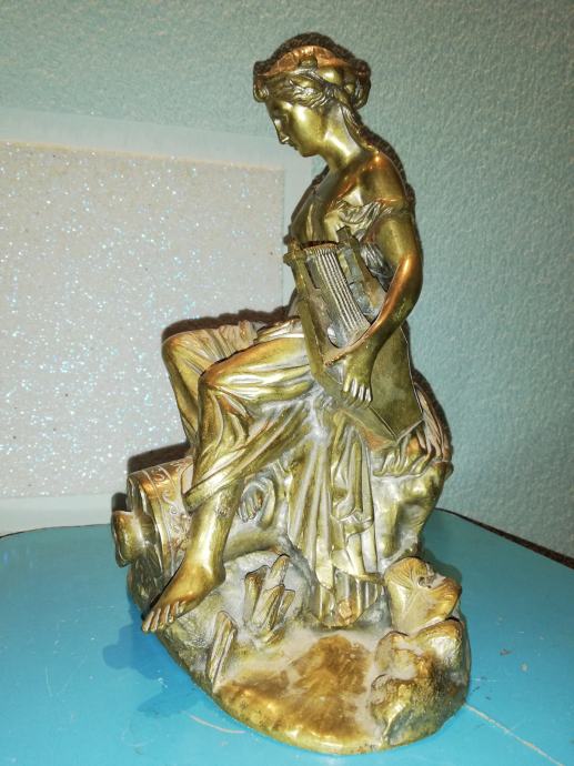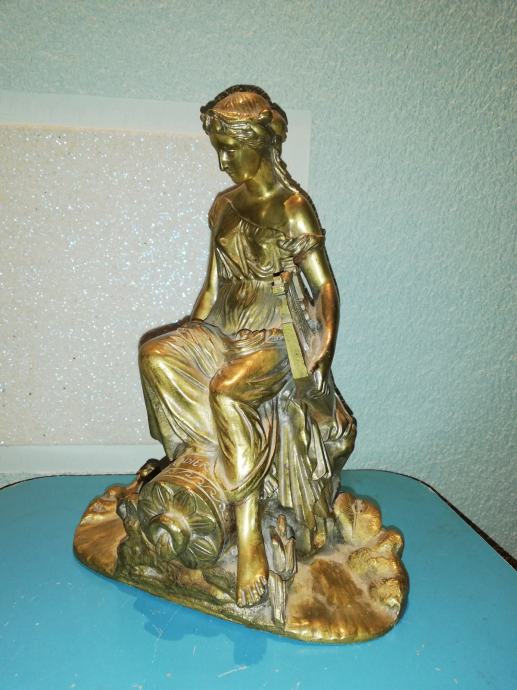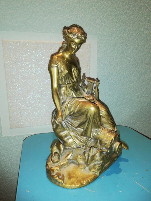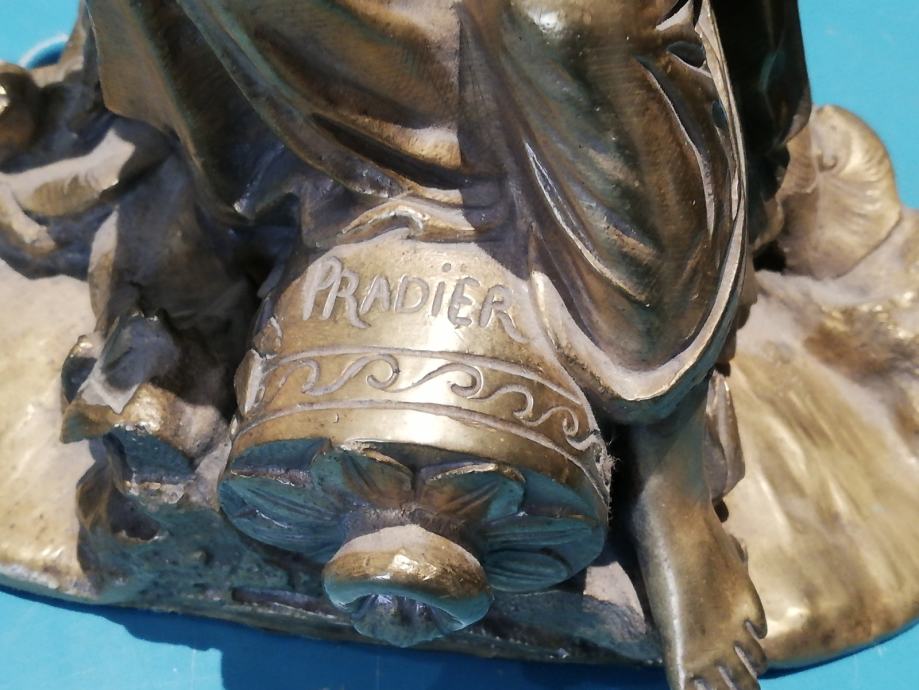Žena sa lirom, figura od svijetle bronce, potpisana, izvrstan uradak Jamesa Pradiera, francuskog kipara rođenog u Ženevi, poznat po svom radu u neoklasičnom stilu. Rođenje: 23. svibnja 1790., Ženeva, Švicarska. Preminuo: 4. lipnja 1852., Pariz, Francuska. Figura izrađena sredinom 19 stoljeća. Dimenzije: visina 31,0 cm, širina 23,0 cm, dubina 18,0 cm, težina 4,1 kg. Iz privatne kolekcije. Da li je figuru izradio sam Pradier ili neki njegov učenik, nepoznato mi je. No, slični radovi u galerijama širom svijeta dostižu visoke cijene, sa potpisom ovog umjetnika.