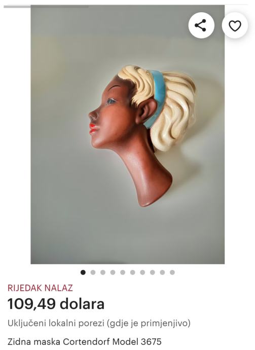 Ukrasna glava žene zidna dekoracija od keramike west germany 3675 vintage iz 1960.godine ručni rad !
