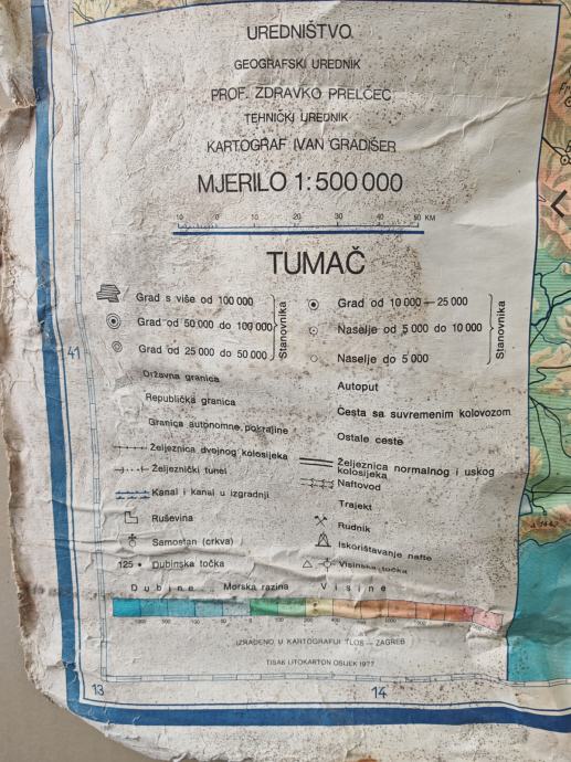 Prodaje se stara zidna karta SFRJ. Stanje vidiljivo na slikama. sačuvan i donji dio šipke...