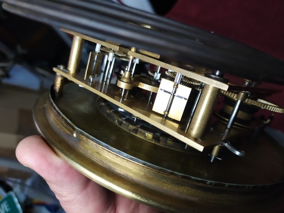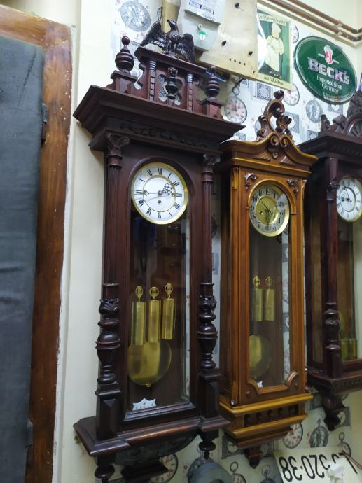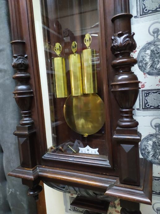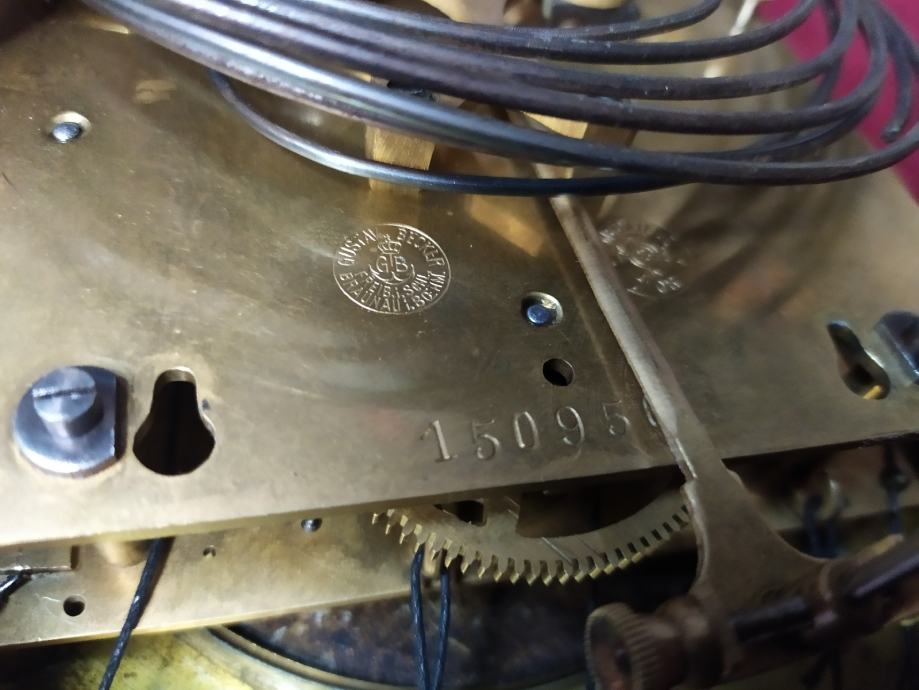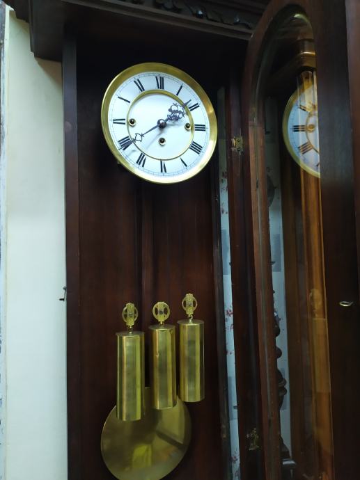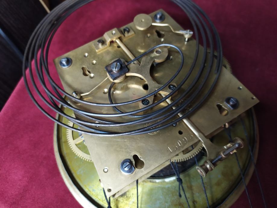 Mehanizam Gustav becker sa tri utega..zvoni na svakih 15min..cetvrtine plus koliko je sati...