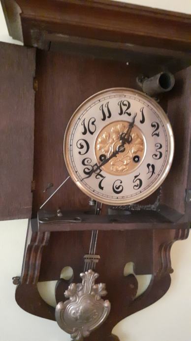 Zidni sat Junghans sa ključem. Ispravan i servisiran. Zvoni na pola i puni sat. Brojčanik u odličnom stanju. Visina sata je 65 cm