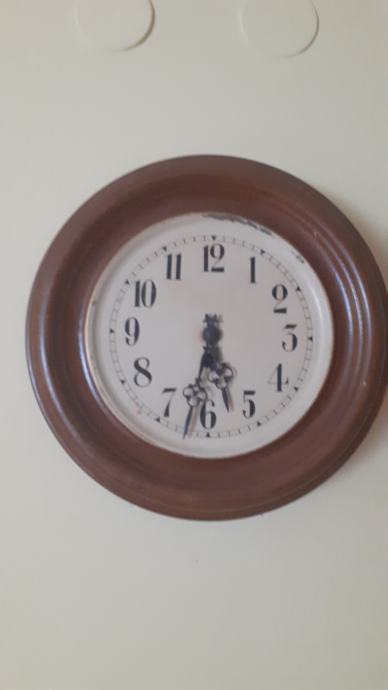 Zidni sat sa klatnom star oko 100 godina. Bez zvona. Ispravan sa ključem. Promjer sata je 38 cm