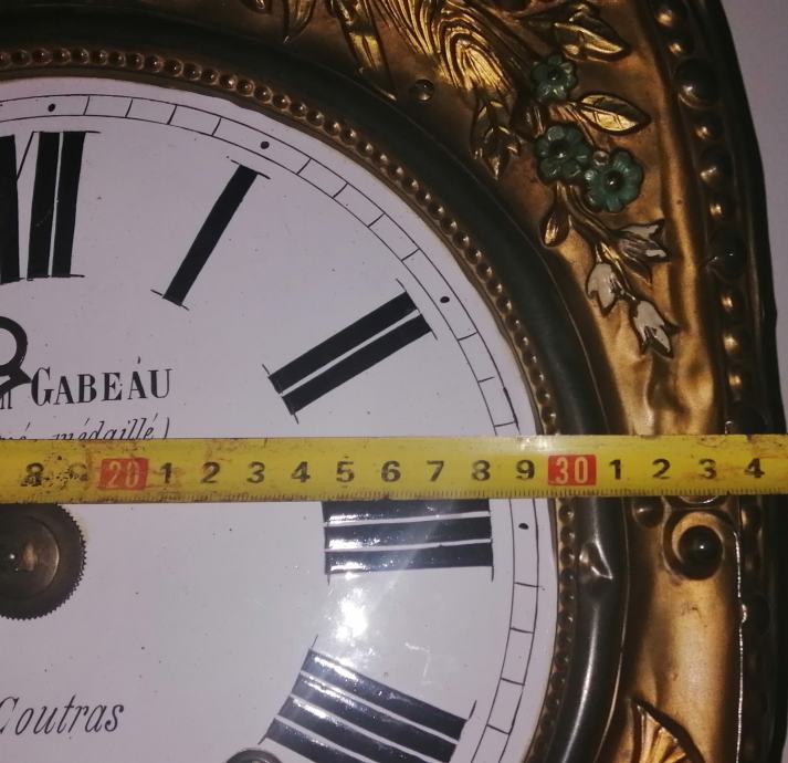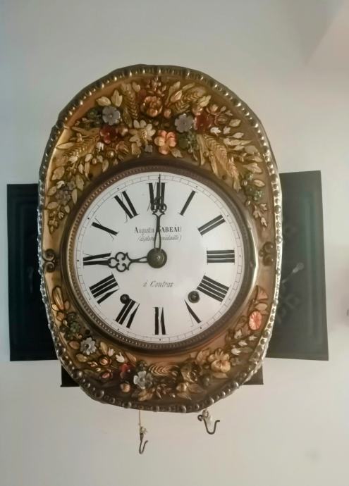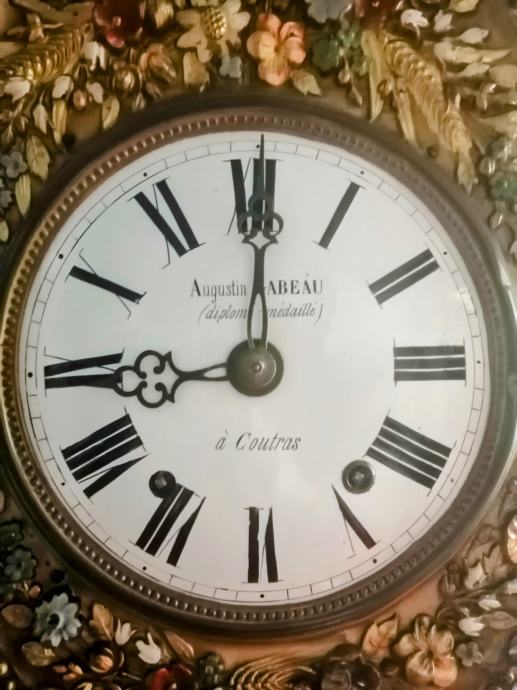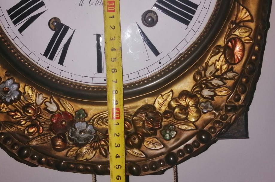 Francuski sat Comtoise u ispravnom stanju,zvoni pola i puni sat,repetira (ponavlja zvonjenje 2 min.kasnije) klatno visina 105 cm