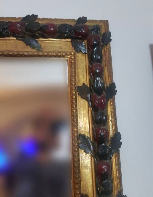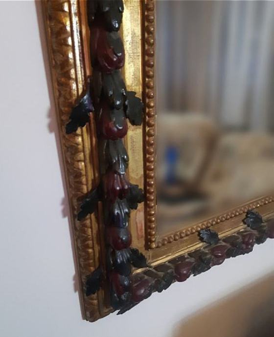 Ogledalo te okvir su u odličnom stanju,ručno farbane ruže sa listićima te pozlata sa minimalnim oštečenjima.