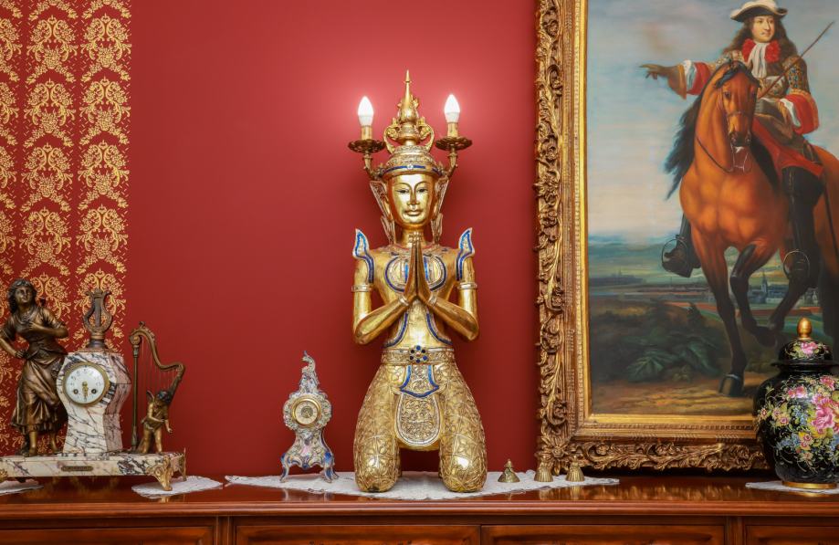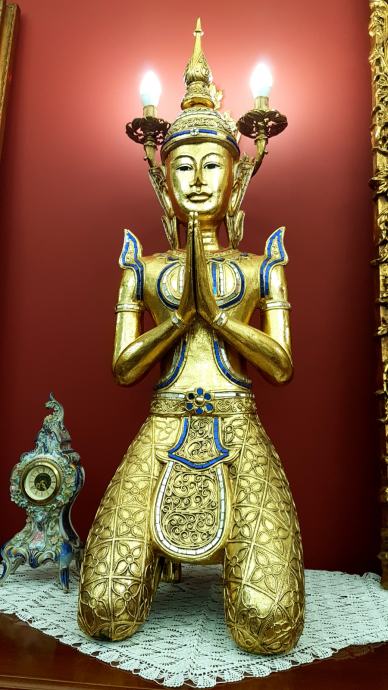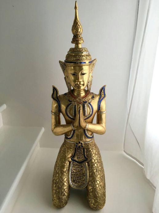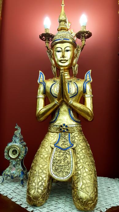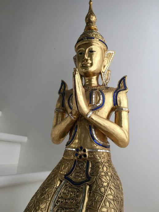 Zlatni drveni kip, visine 90cm, u odličnom stanju, ručni rad, ručno rađen i ručno farban.
