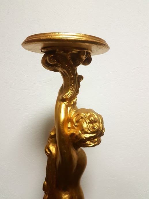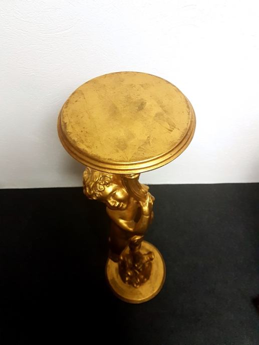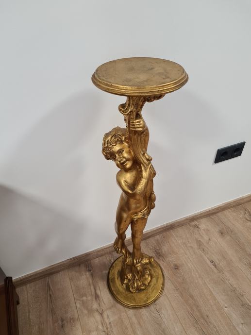 Zlatni drveni stup s motivom anđela, obrada sa svih strana, bojan tehnikom zlatnih listića, odlično stanje!