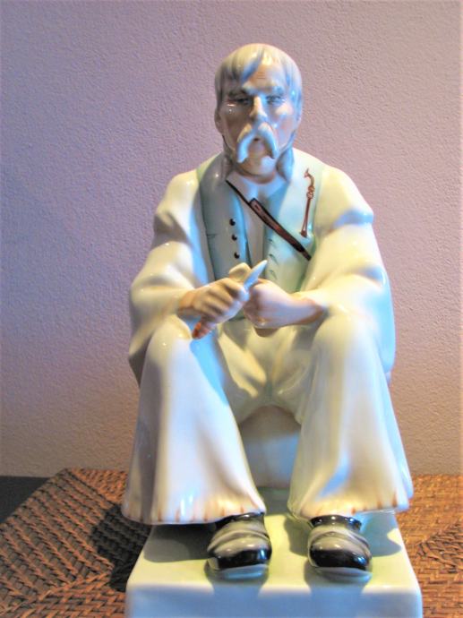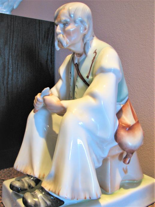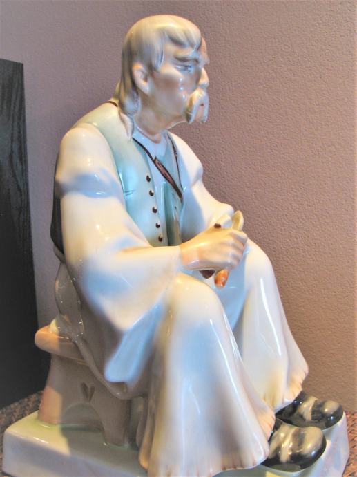 Prekrasna stara porculanska figura starca, poznati primjerak cijenjenog Zsolnay mađarskog porculana, vrlo velikih dimenzija (cca 32cm visine), o kojoj se možete informirati na internetu. Idealna za konobe, ruralne prostore ili kolekcionare antikviteta. Nešto posebno!