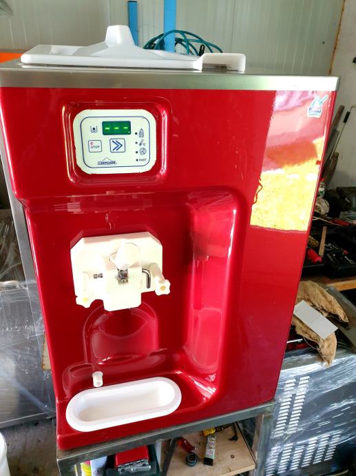 Na prodaju aparat za soft toceni sladoled Carpigiani 191 psp sa mesacem u bazenu i pasterizacijom, vazdusno hladjenje, pravi 1 ukus tako da je idealan ko radi sladoled sa prilozima u casice (McDonalds)aparat je servisiran, i spreman za rad najnovije generacije, garancija 1god. Kod nas imate sve u vezi tocenog sladoleda: kasike, case, sirupi, smese za sladoled, reklame, rez. delove. . . itd.