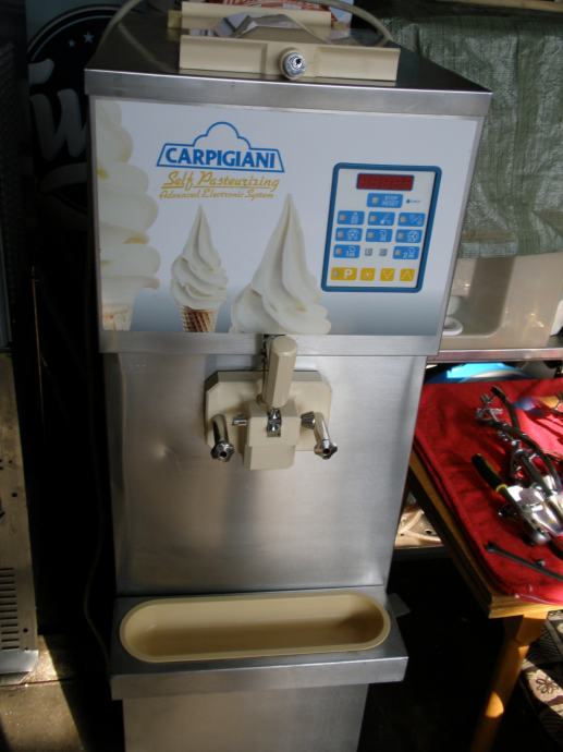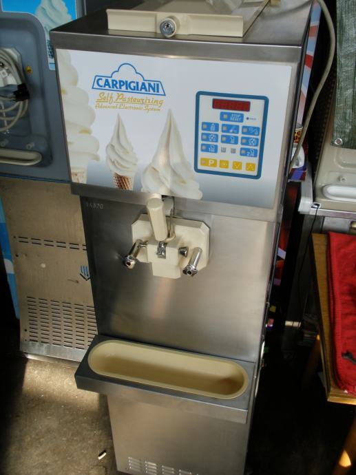 www. tocenisladoled. com Na prodaju aparat za soft sladoled Carpigiani 261/psp vodeno hladjenje,12 lit. zapremina bazena, pravi 26 kg sladoleda na sat! novi tip pumpe, prohrom mesac, ima pasterizaciju tako da se pere jednom u 15 dana! takodje poseduje i mesac u bazenu, masina je kao nova u fabrickom stanju kod nas mozete naci i sirupe, topljene cokolade za prelivanje sladoleda kao i topinge, casice, kasicice i ostale pratece stvari u vezi soft sladoleda! Na sve polovne aparate imate garanciju godinu dana! odrzavanje i rukovanje masinom na youtube: https: //youtu. be/VFBn6C2z04g